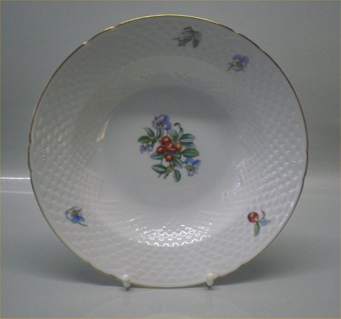022 Stor dyb tallerken 24 cm (322) Bing & Grøndahl Ægir spise- og kaffestel på den skællede grundform 356: Hvidt porcelæn, tyttebær og vild stedmoderblomst (dekoration som Ymer og Rio)