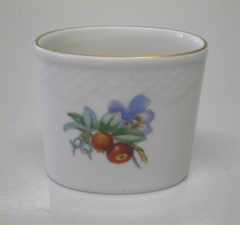 183 Tandstikbæger ovalt 7 cm (369) Bing & Grøndahl Ægir spise- og kaffestel på den skællede grundform 356: Hvidt porcelæn, tyttebær og vild stedmoderblomst (dekoration som Ymer og Rio)