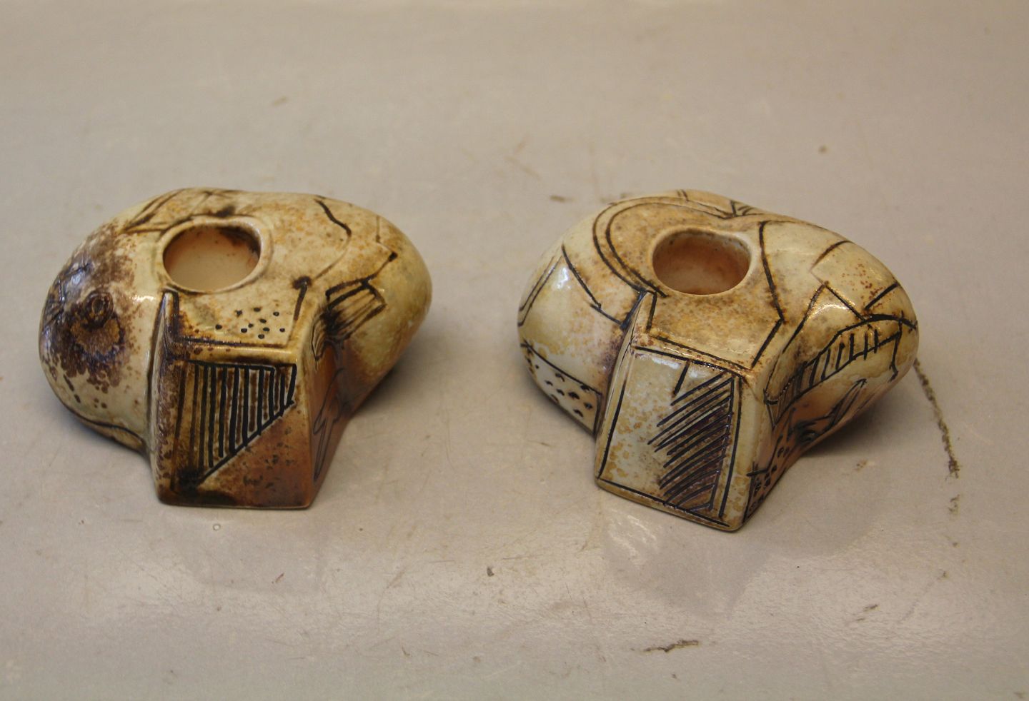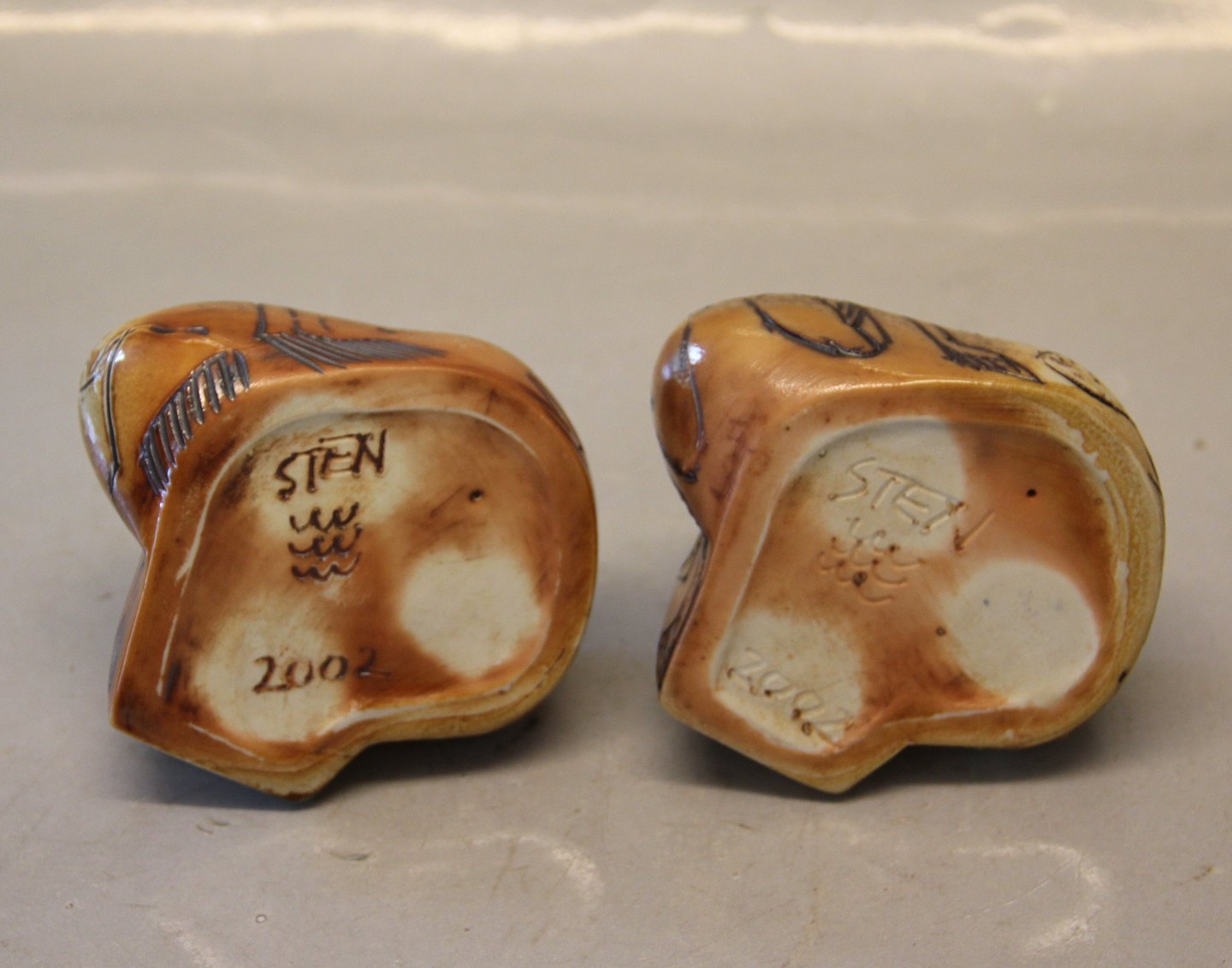 Beskrivelse: 2002 Kgl. Par lysestager ca 5 x 10 cm Signeret Steen 2002 Royal Copenhagen stentøj I fin og hel stand