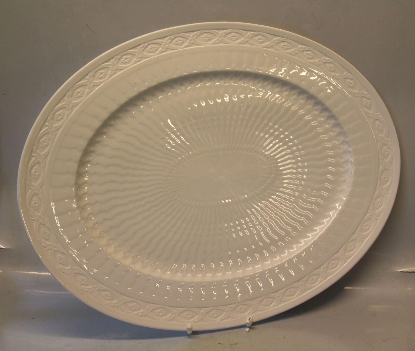 11510 Kæmpe ovalt stegefad 38.5 x 50 cm Kongelig Dansk Viftestellet, hvidt