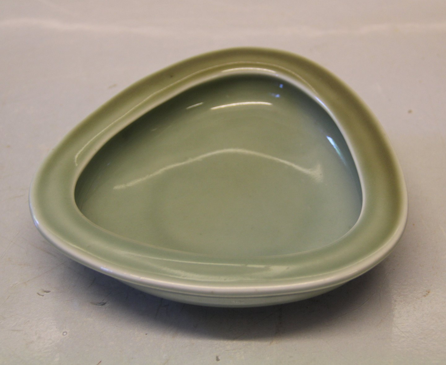 20162 Kgl. Jadegrøn Trekantet skål 16.5 cm, Bode Willumsen, marts 1928 Kongelig Dansk Stentøj Celadon