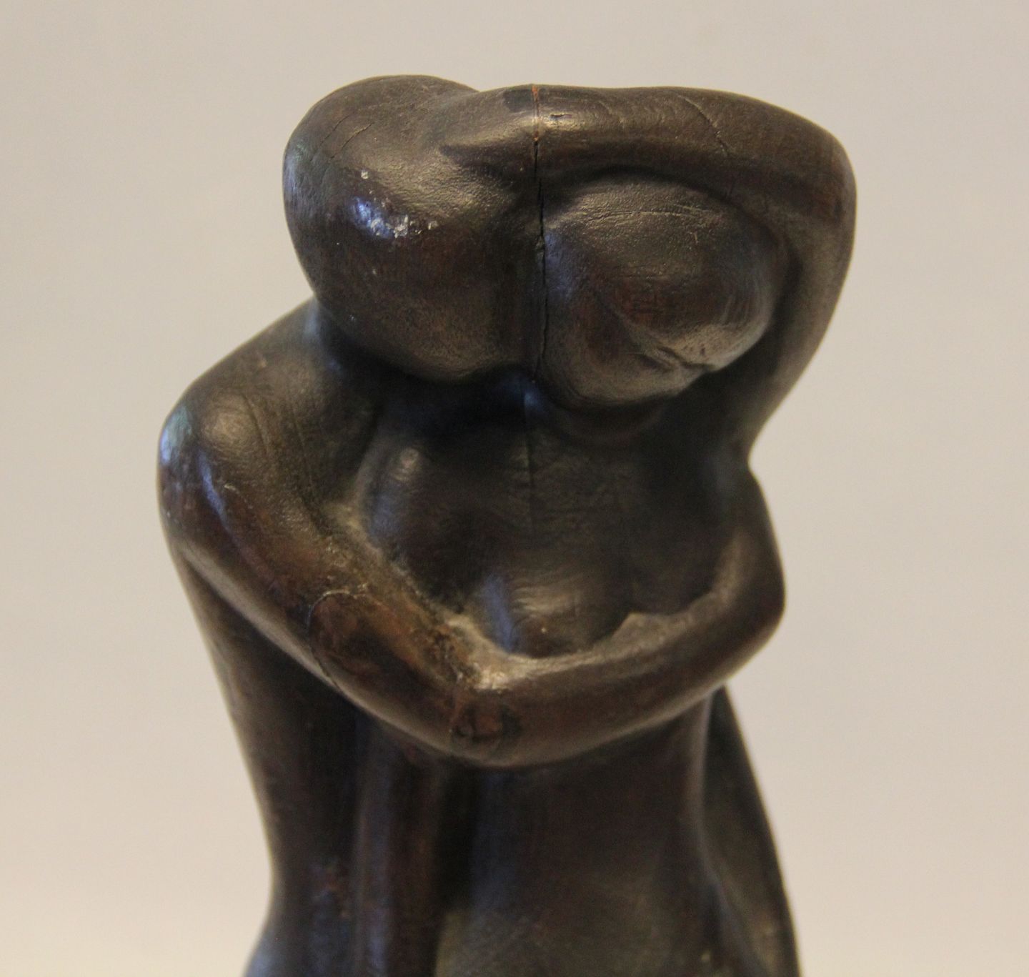 OTTO P. Træfigur 30 cm Forelsket par Mørkbejset træ skulptur