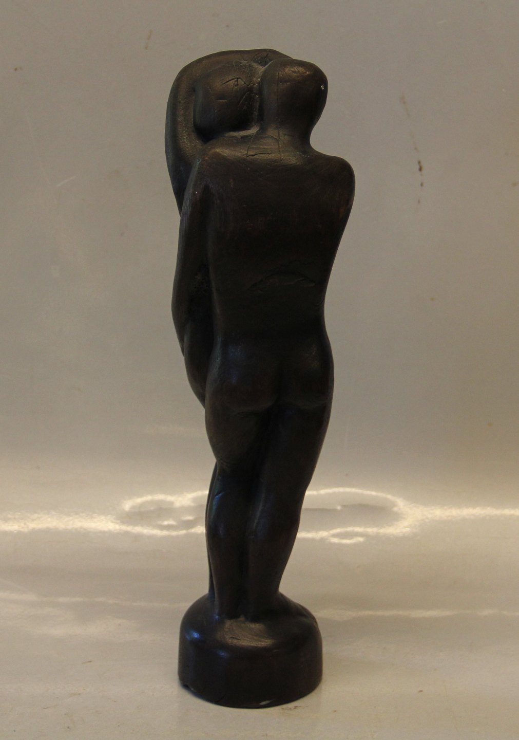 Beskrivelse: OTTO P. Træfigur 30 cm Forelsket par Mørkbejset træ Signeret