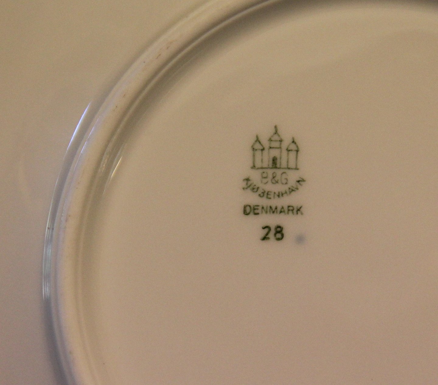 028 Tallerken 17,5 cm (616) B&G Menuet: Hvidt porcelæn, takket guldkant, hvid, form 601