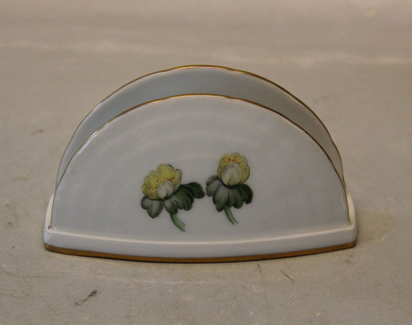 233 Serviet holder 6,5 cm Bing & Grøndahl Erantis blomster på hvidt porcelæn med guldkant I fin og hel stand
