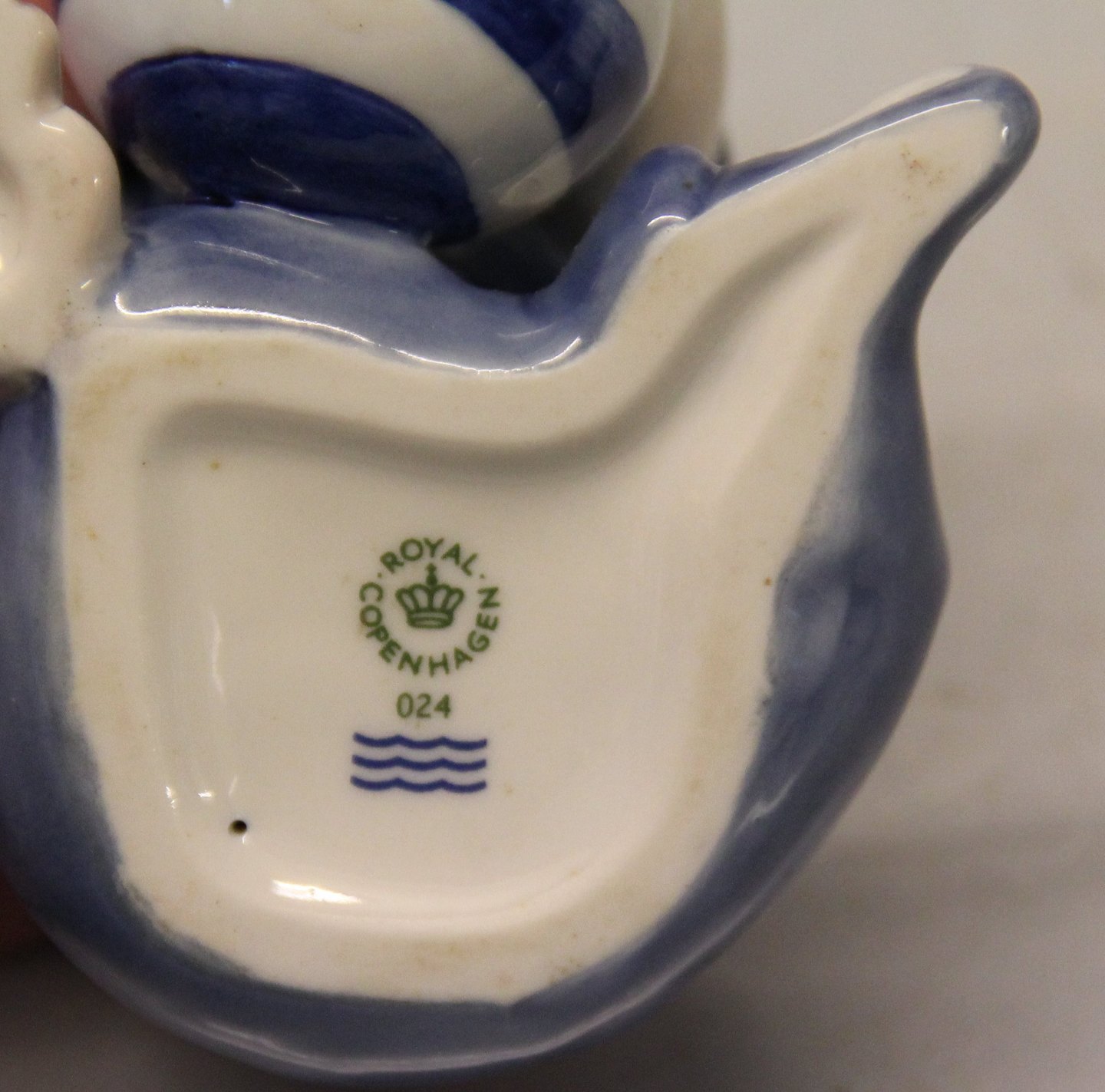0024 Kgl. Siddende dreng i blåt med blå bold 11 cm (1249024) Allan Therkelsen Royal Copenhagen