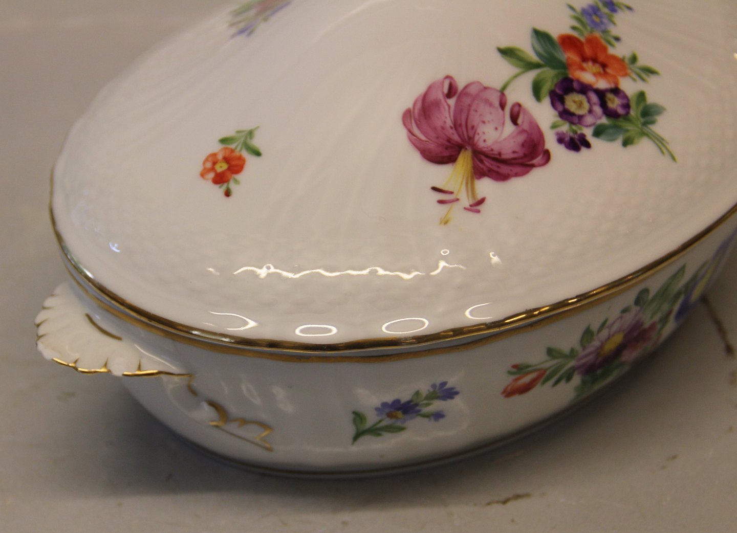 Kongelig Dansk Let Saksisk Blomst 493-1702 Lille terrin 18 x 24 cm - Låg intakt