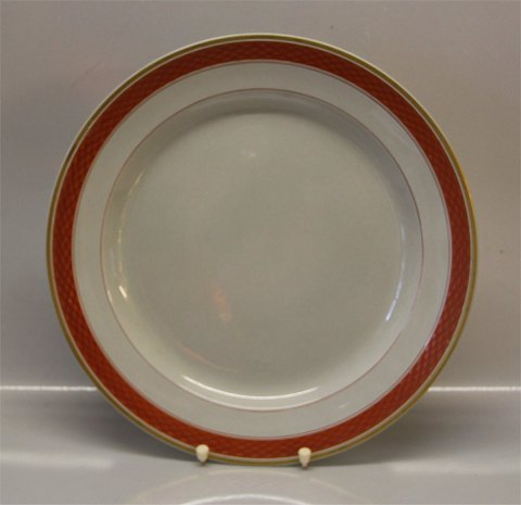 Stort rundt fad 33,5 cm Alluminia Tureby Stel Dekoration 254 Design Nils Thorsson 1934 Rødt bånd og guld Håndmalet på Viktoria III Turreby