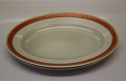 Ovalt fad 24 cm Alluminia Tureby Stel Dekoration 254 Design Nils Thorsson 1934 Rødt bånd og guld Håndmalet på Viktoria III Turreby