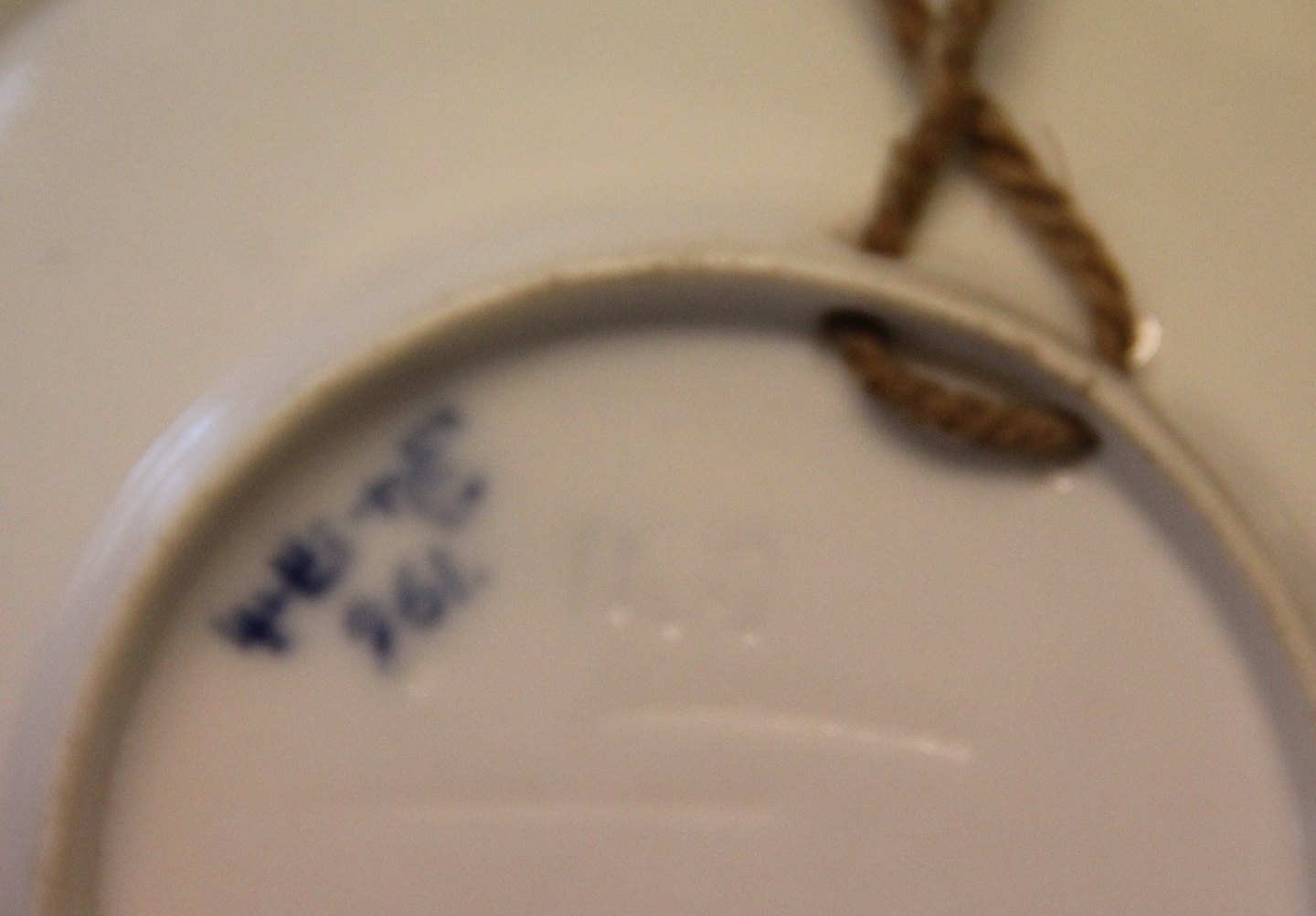 Beskrivelse: BGM 003# B&G mindeplatte fra 1895 Kvindernes udstilling 13 cm Motiv Margrethe d. Første Designet af Effie Hegerman Lindencrone og dekoreret af Fanny Gaarde Signeret af begge