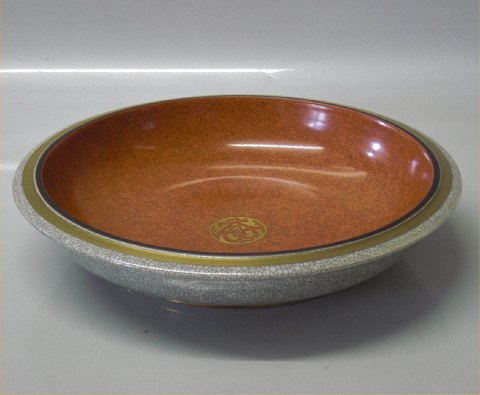 212-3806 Kgl. Rød skål med monogram KIB1876; 25.5 cm Kongelig Dansk Craquelé, Craquele