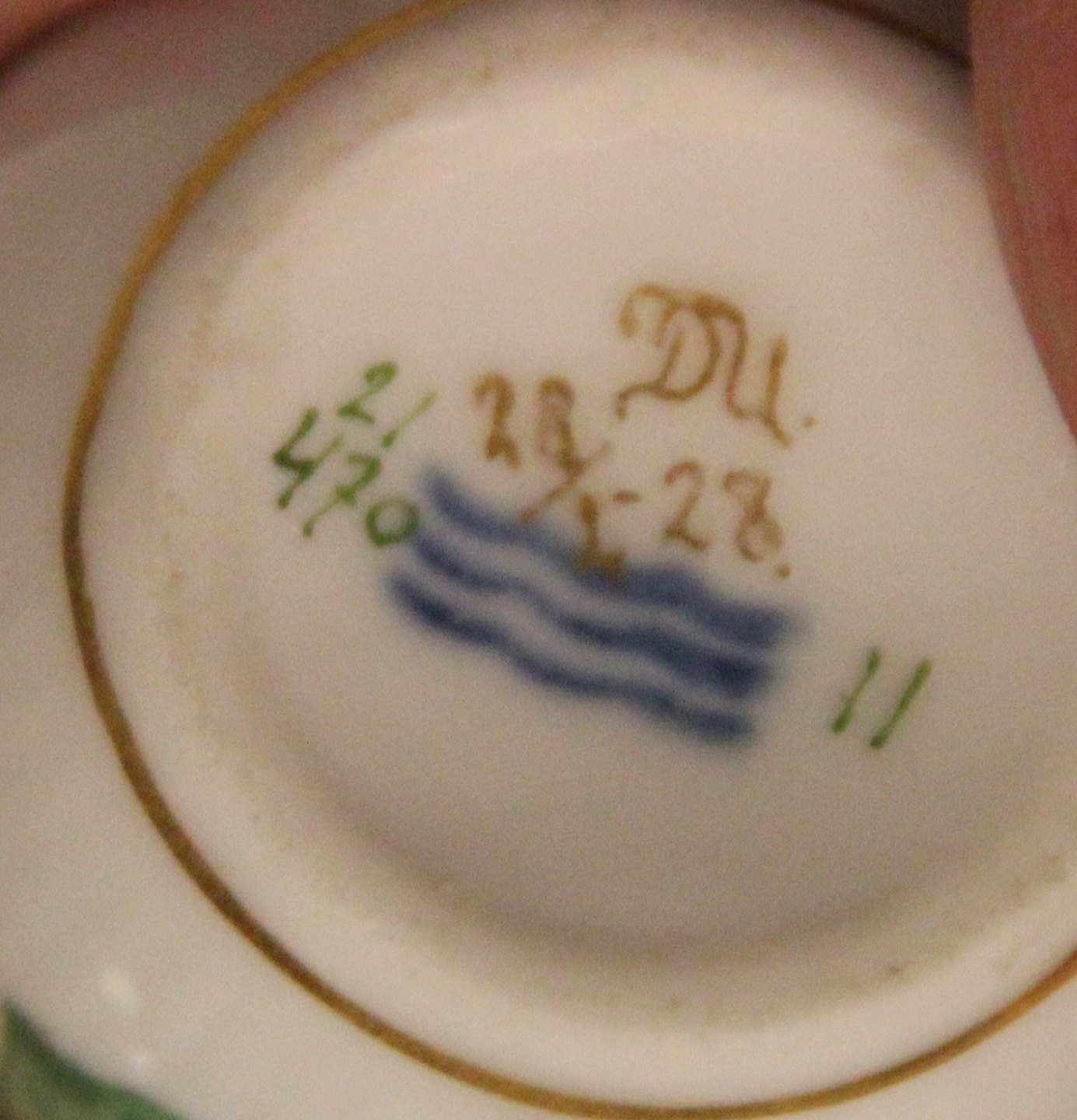 Beskrivelse: 21-470 Kgl. Visitkort holder 4.5 x 5 cm kugle med blomst og monogram DGR 28-5-1928 fra Royal Copenhagen I hel og fin stand