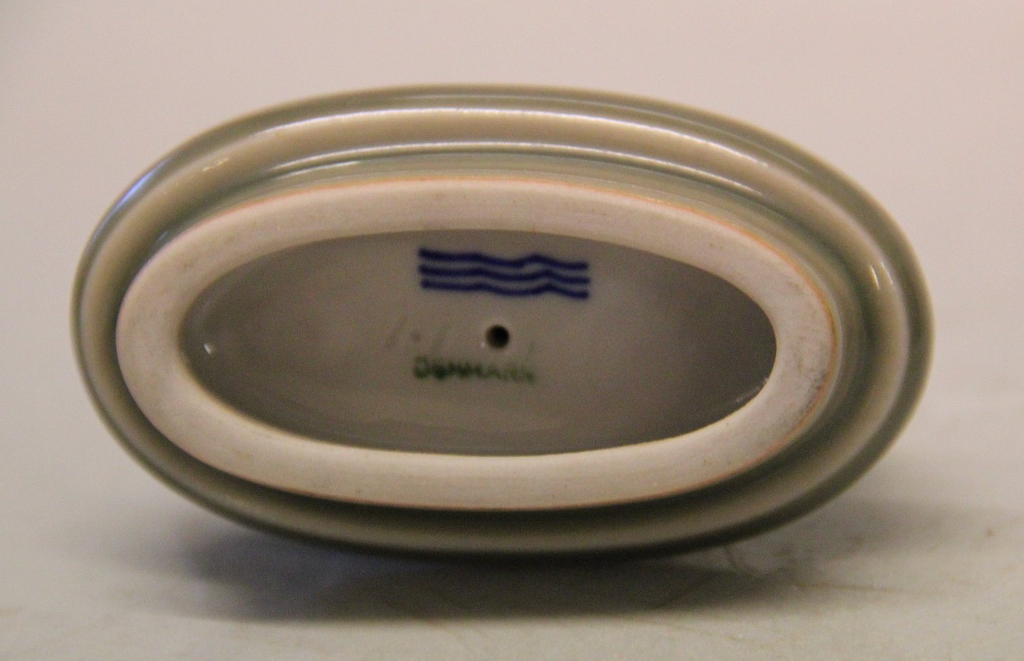 21046 Kgl. Oval krukke med mor og barn på låg 15 x 10 cm JH, Nov. 1950 Kongelig Dansk Stentøj