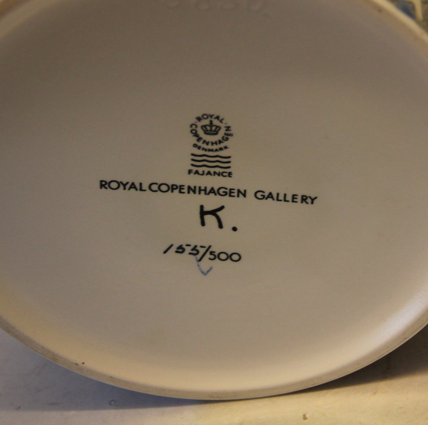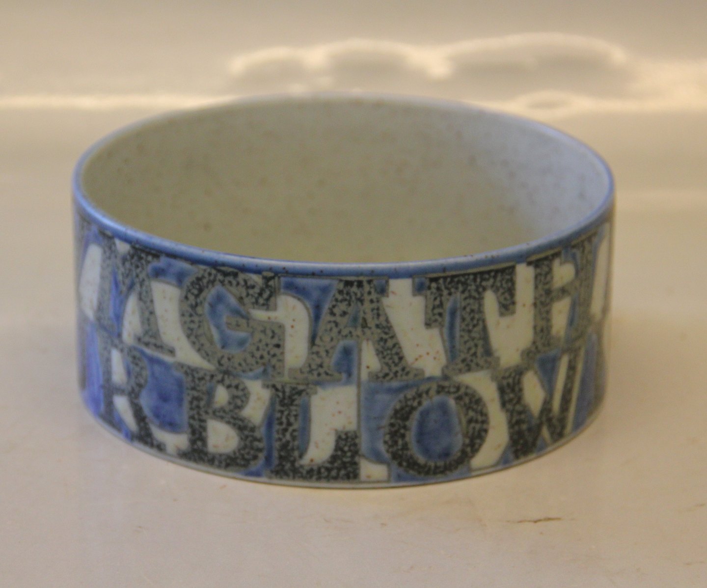 Bo Kristiansen skål 7 x 17 cm med bogstaver Royal Copenhagen Gallery no 155 of 500 signeret K. Kongelig Dansk Fajance