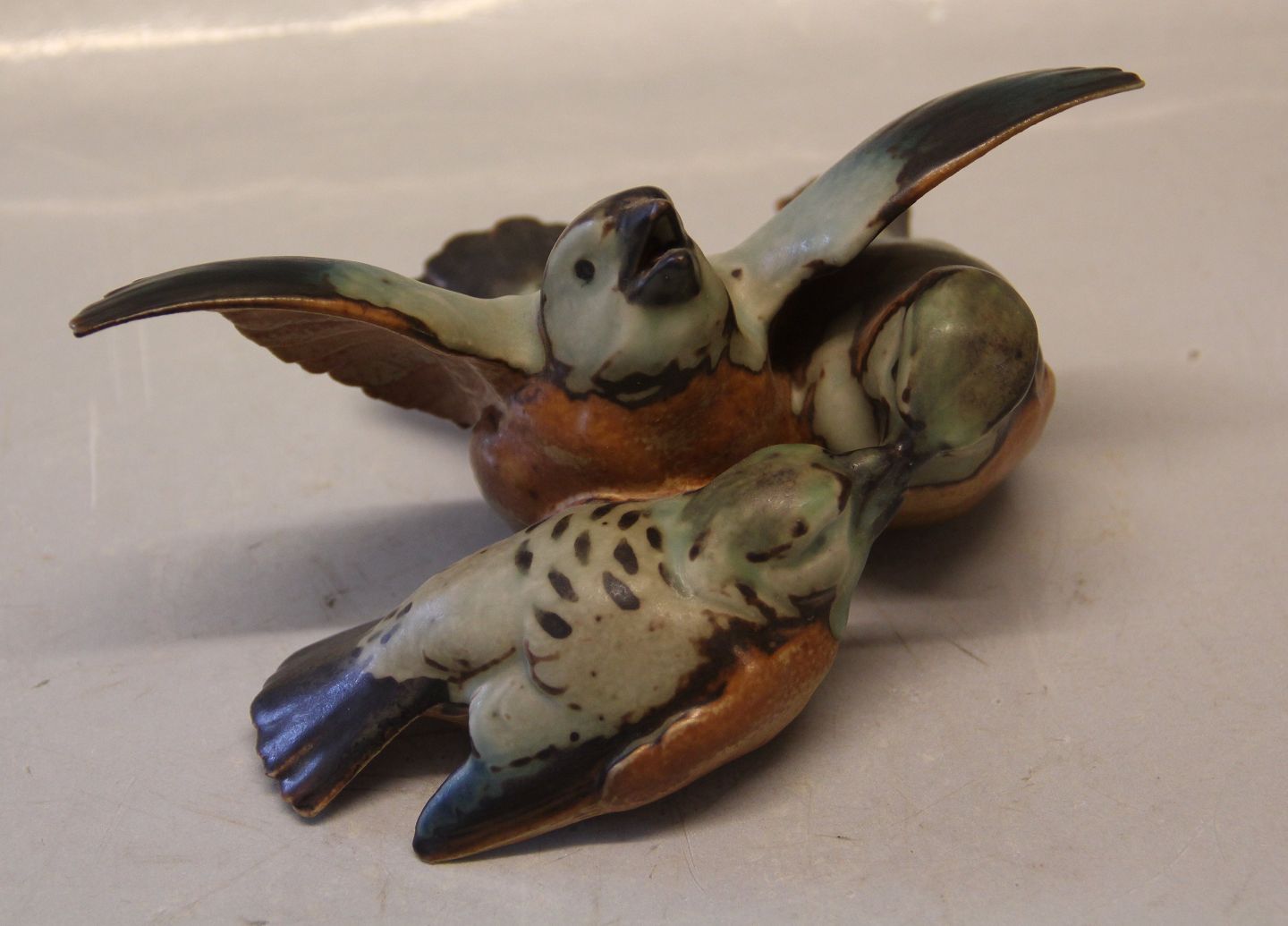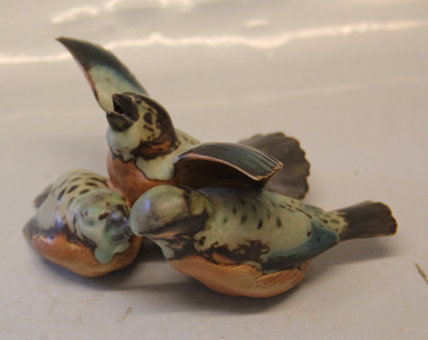 : 1670 Spurvegruppe ca 8 x 18 cm Beskyttelsen Bing & Grøndahl stentøj I fin og hel stand Bing & Groendahl