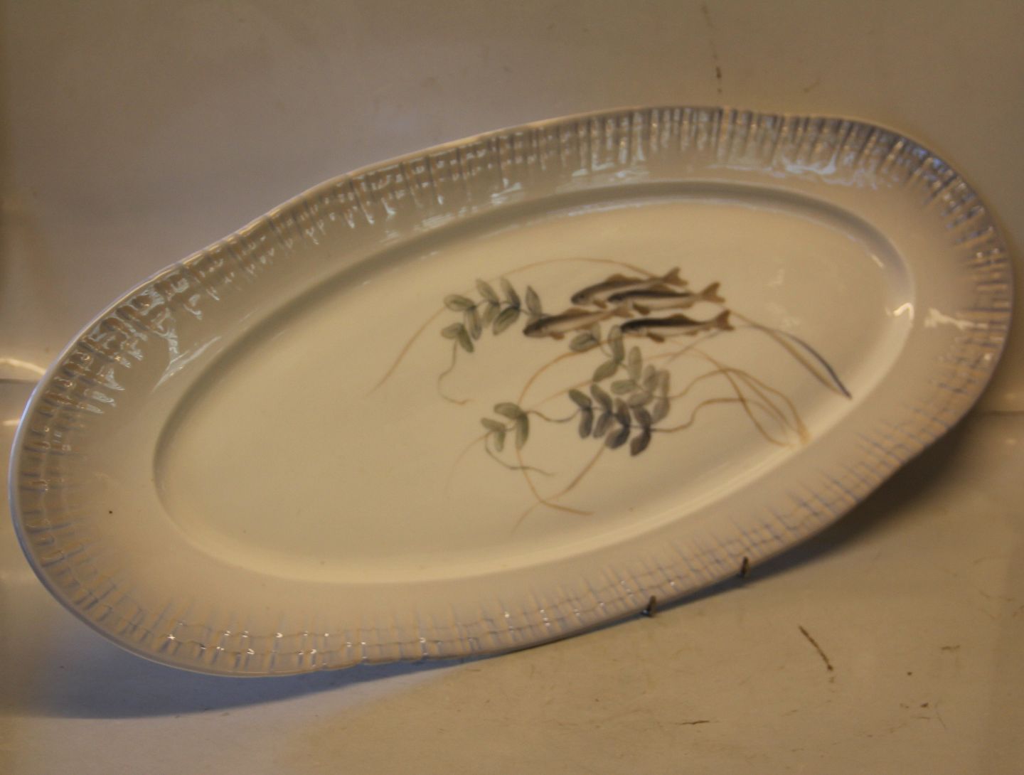 Beskrivelse: Kgl. Art Nouveau 69-9511 Fiskefad 61.5 cm fra Royal Copenhagen I hel og fin stand Den kongelige Porcelainsfabrik