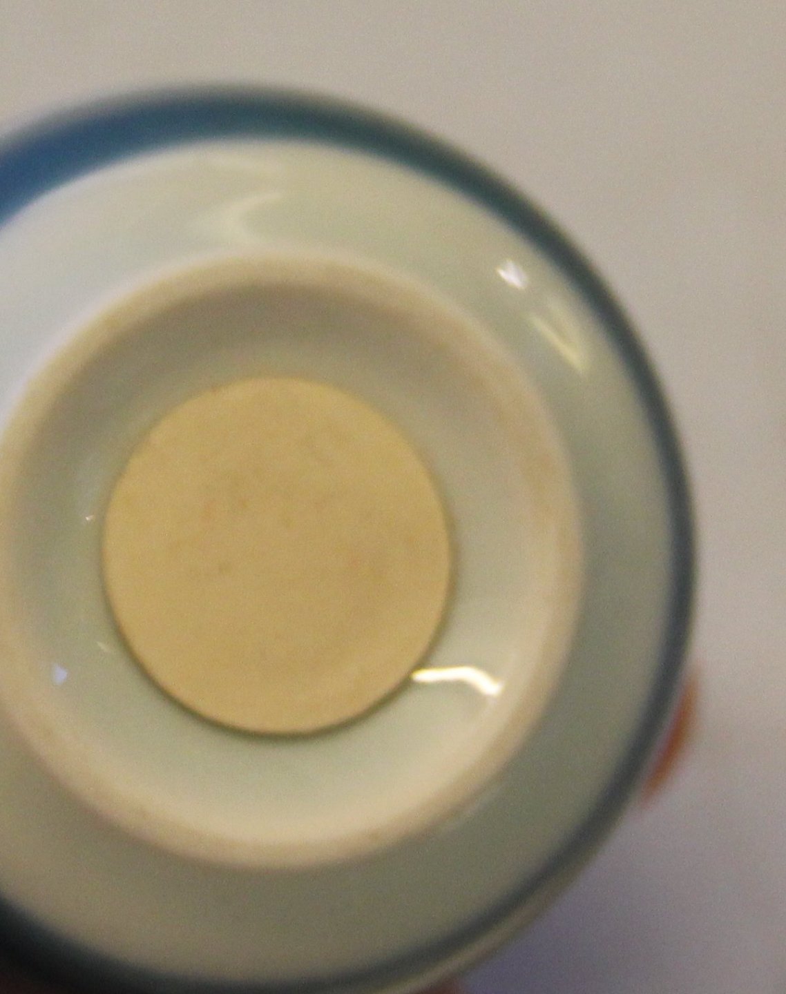 Peber 5.5 cm Mistelten. Desiree Stellets runde former er dækket med en silkeblød glasur og håndmalet med er lys almueblå farve lagt under glasuren.