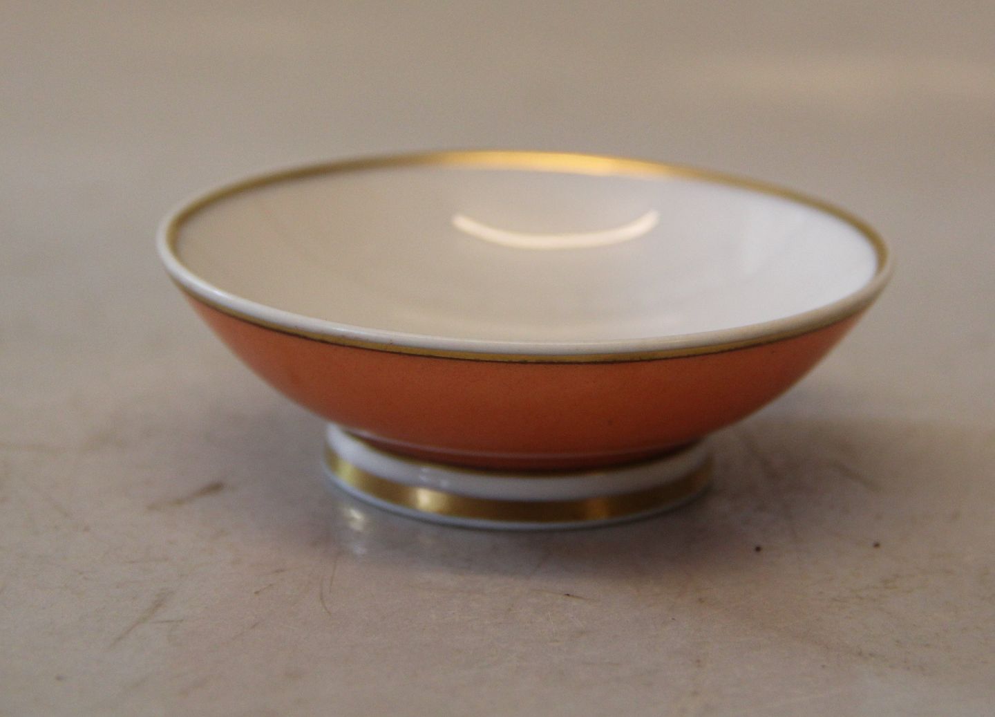 792-2471 Assiet på fod 3 x 8 cm Kgl. fra Royal Copenhagen Jægersborg Orange pastelfarve med guld