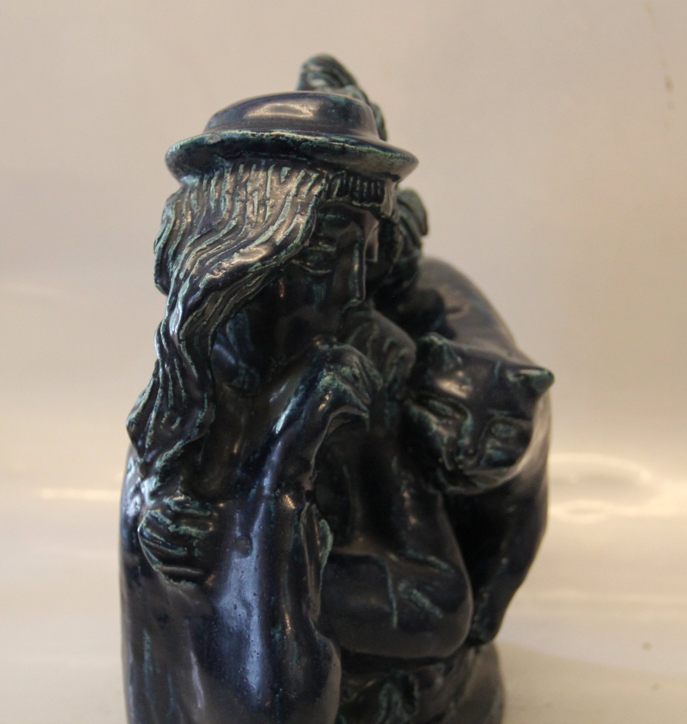 Beskrivelse: Unika Blåglaseret Stentøj Pige med kat 26 x 27 cm Helge Christoffersen Royal Copenhagen stentøj I fin og hel stand Signeret HC