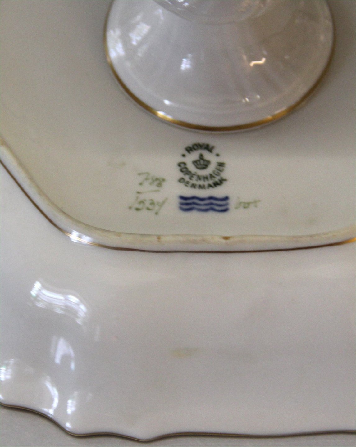 1534-788 Fad på høj fod 14 x 23 cm Salatskål - frugtskål Svejfet # 788 Kongelig Dansk Svejfet Porcelæn - hvidt med beige (Chamois Fond) kant og guld