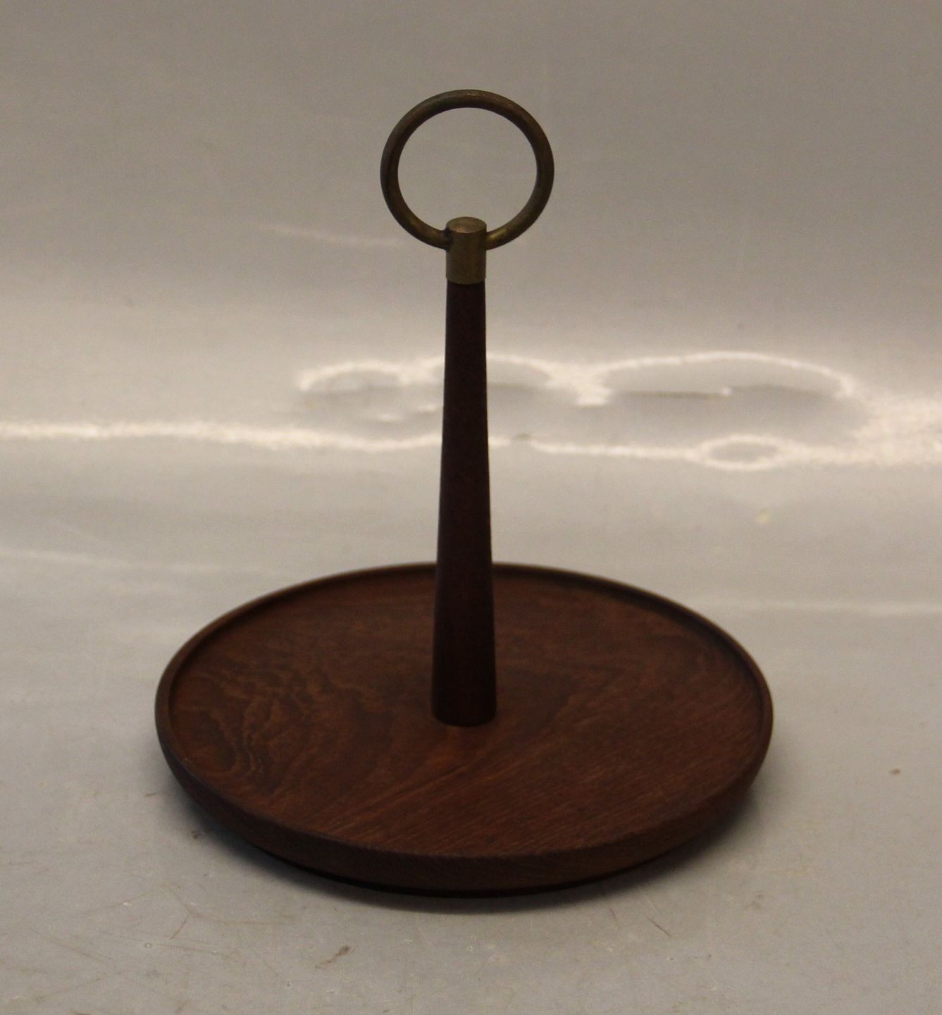 Teak træ plat de menage med messing hank ca 15 x 18 cm Quistgaard? Nissen?