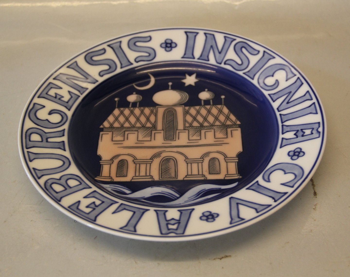 Beskrivelse: Aalburgensis Insignia CIV Dobbelt A Aalborg Skønvirke Bing & Grøndahl Aalborg Byplatte 23,8 cm 3163 Signeret