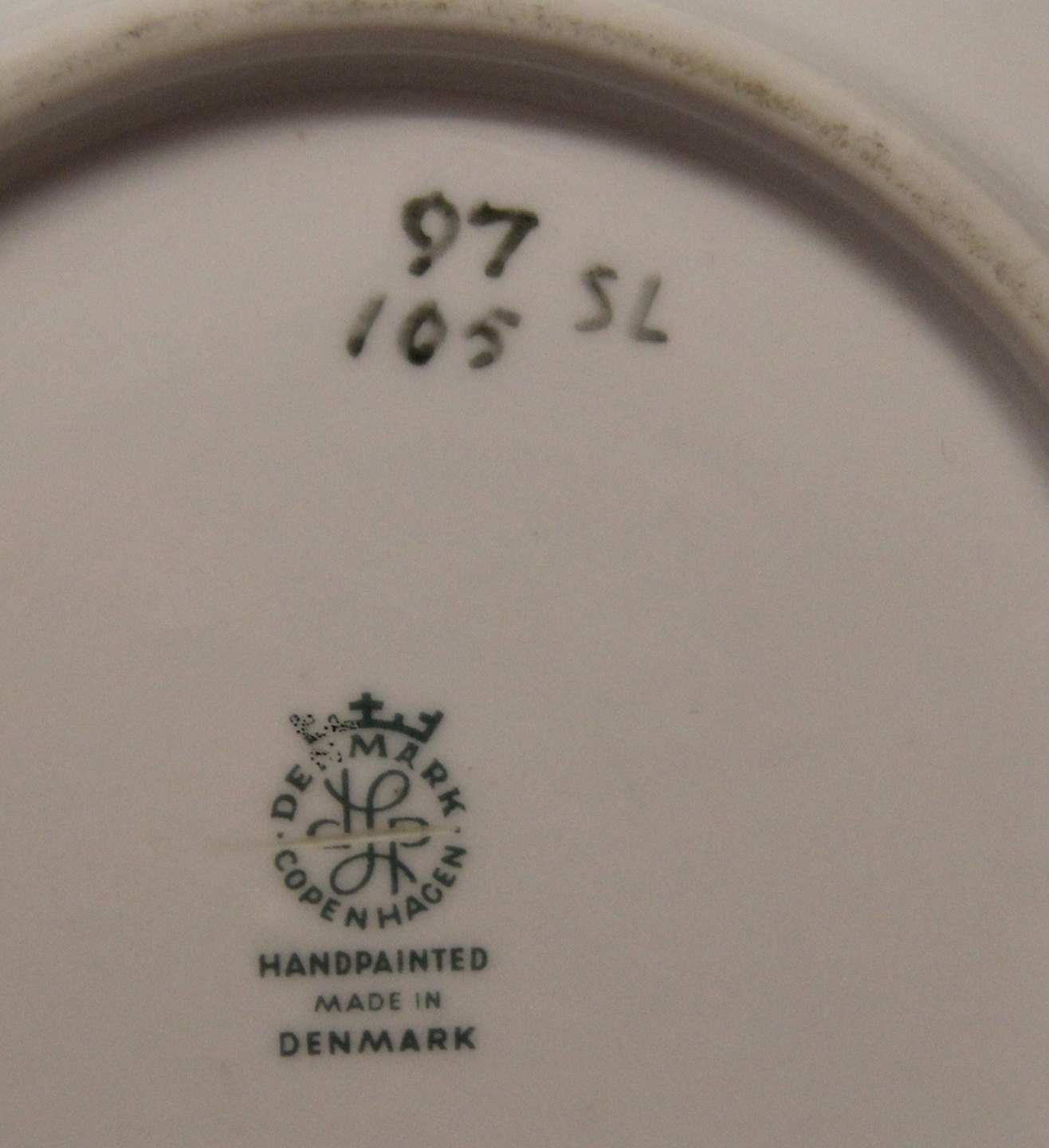 Beskrivelse: 97-105 Lyngby skål med smeden på sit værksted 4.5 x 22 cm Lyngby . Stemplet med Kongelig Krone, Handpainted, Copenhagen, Made in Denmark. Også kendt som Københavns Porcelænsmaleri (KPM)