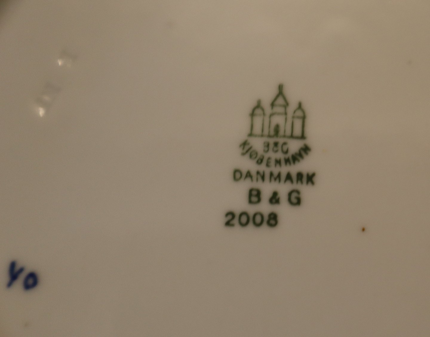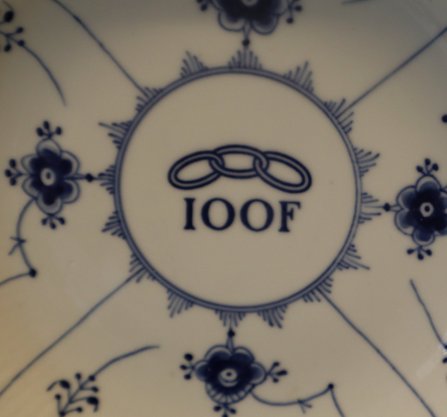 2008 Stor dyb tallerken 24 cm Hotel m logo Bing & Grøndahl Riflet Blåmålet Hotelporcelæn