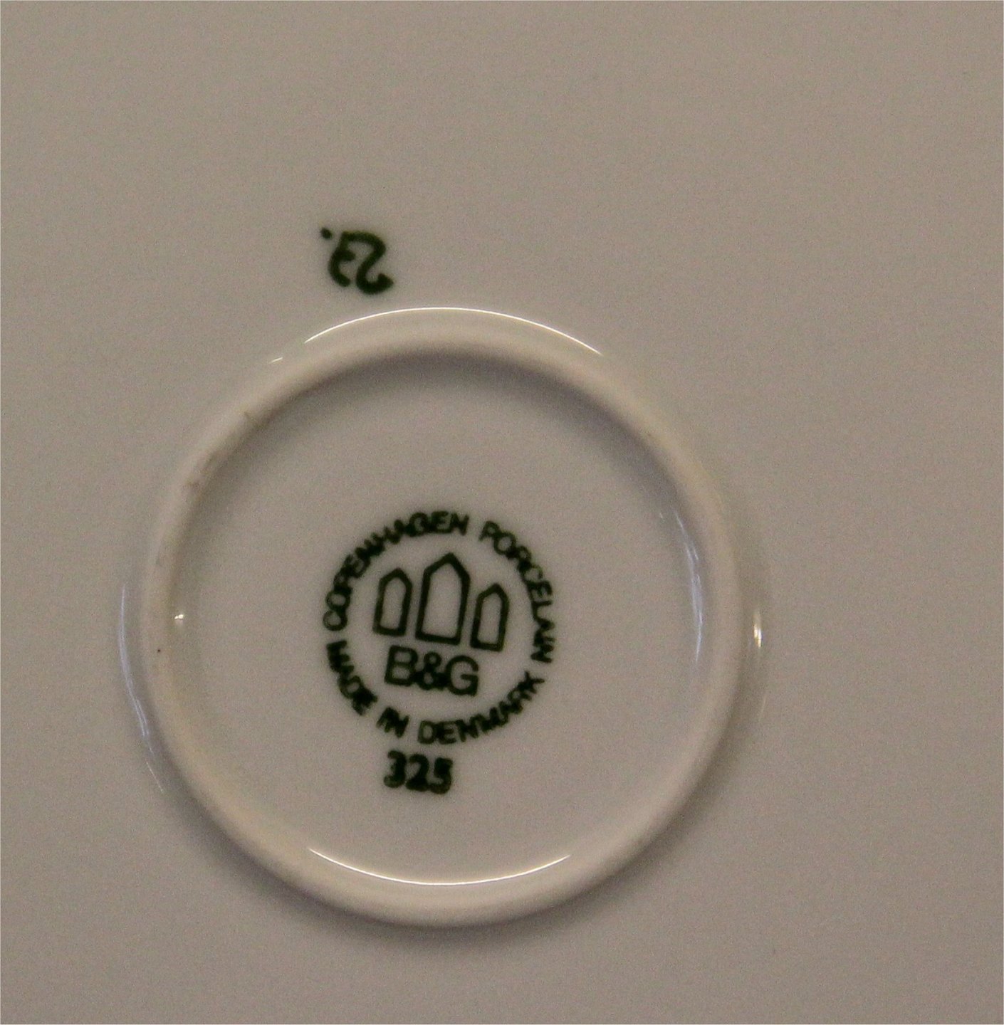 325 Middagstallerken 24 cm (025) Olympia Bing & Grøndahl B&G Olympia: Kraftigt hvidt porcelæn med mønster med grønne streger, som Delfi, form 43 I fin og hel stand Bing & Groendahl