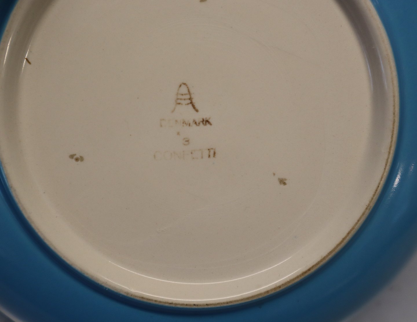 03 Skål 20 cm x 4.3 cm Lyseblå Confetti Royal Copenhagen Aluminia fajance spisestel - kaffestel I god brugt stand