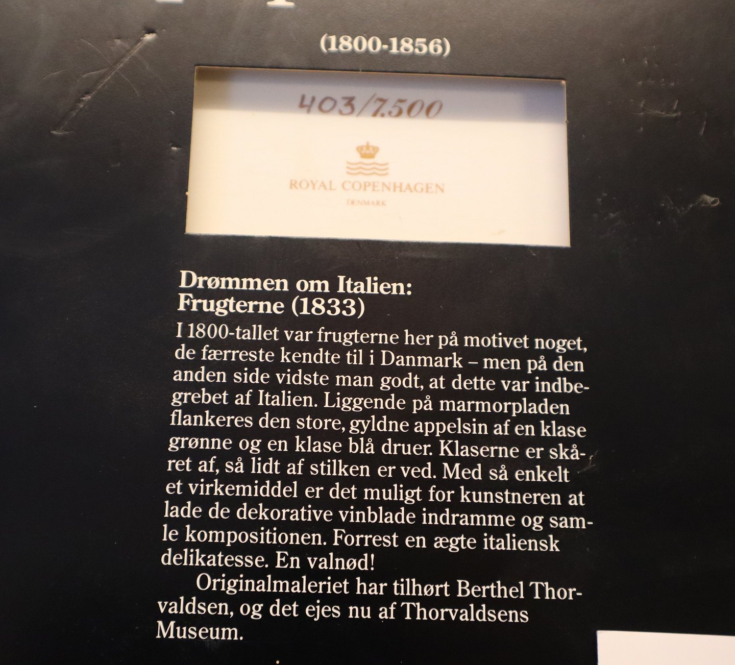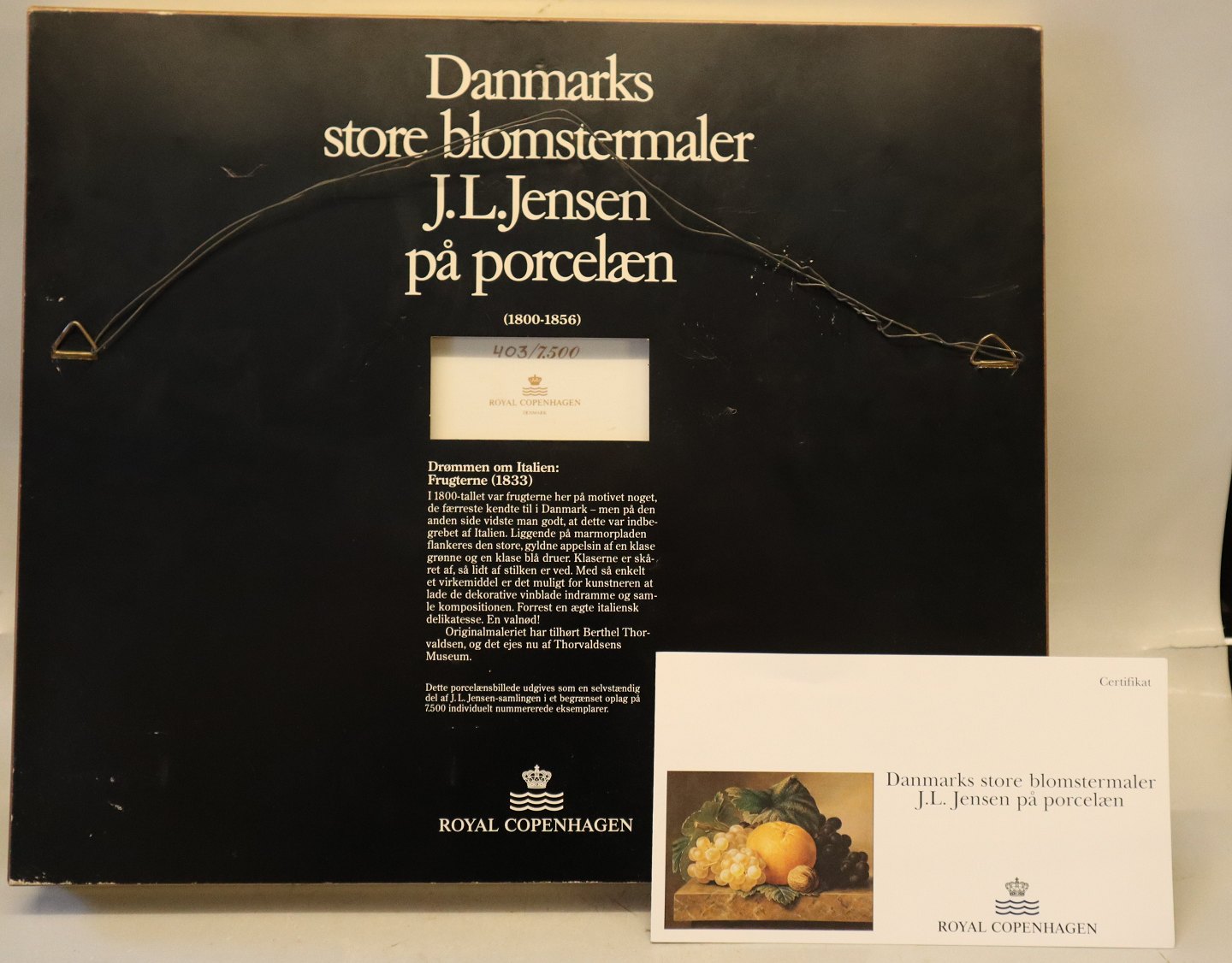 Beskrivelse: Kgl. J.L. Jensen Blomstermaleri: Drømmen om Italien: Frugterne (1833) 34 x 40 cm 403/7500 fra Royal Copenhagen I hel og fin stand