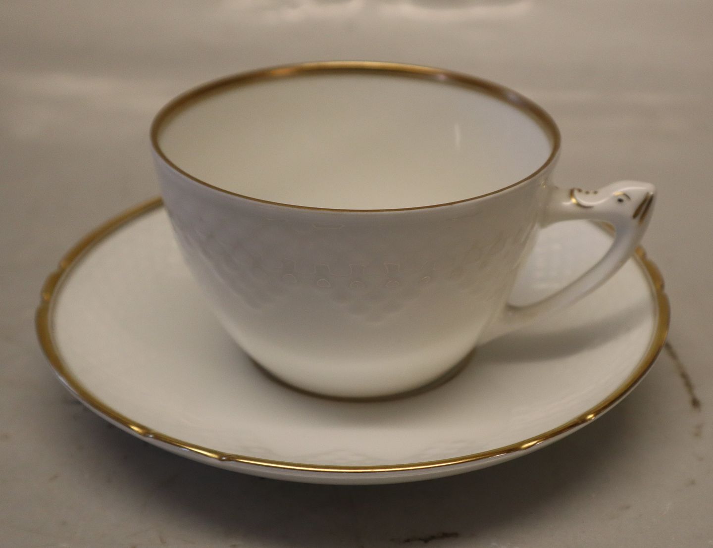 104 Morgenkop 2,25 dl og underkop 17 cm (476) Bing & Grøndahl Hartmann Hvidt porcelæn med dobbelt guldkant. Bing & Groendahl I hel og fin stand