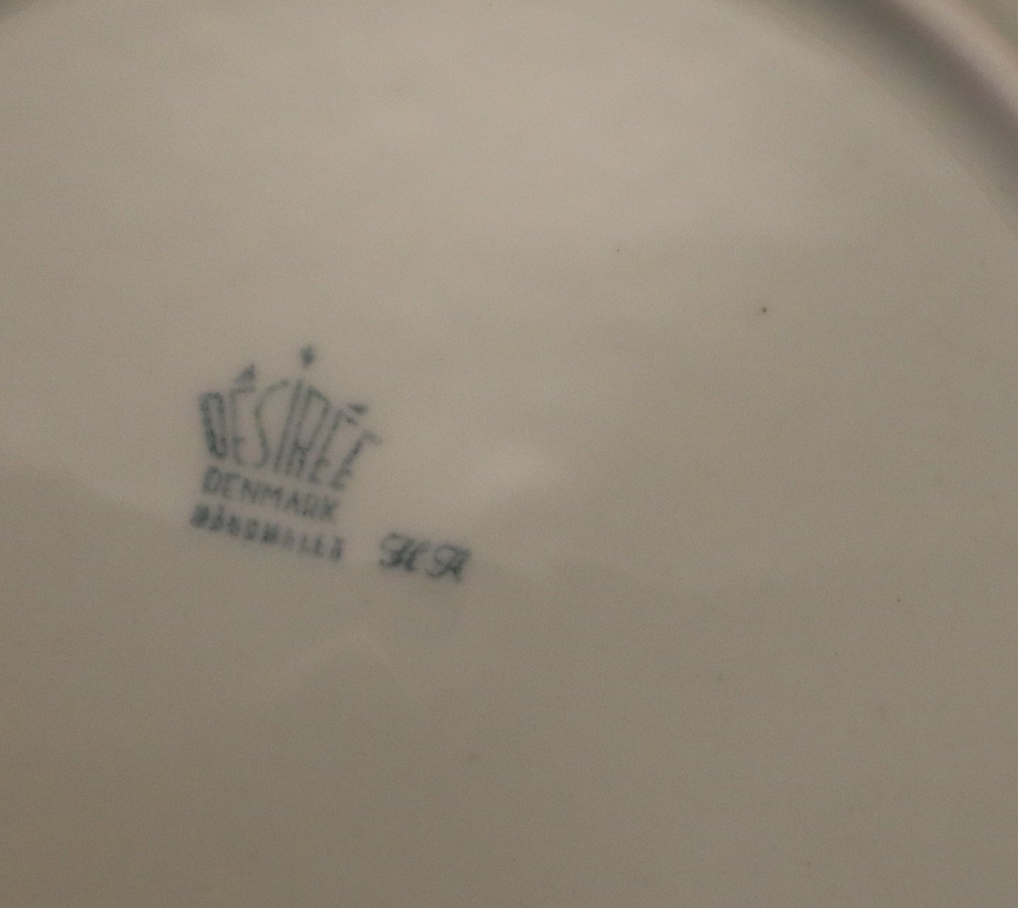 Kagetallerken 18 cm Mistelten. Desiree Stellets runde former er dækket med en silkeblød glasur og håndmalet med er lys almueblå farve lagt under glasuren.