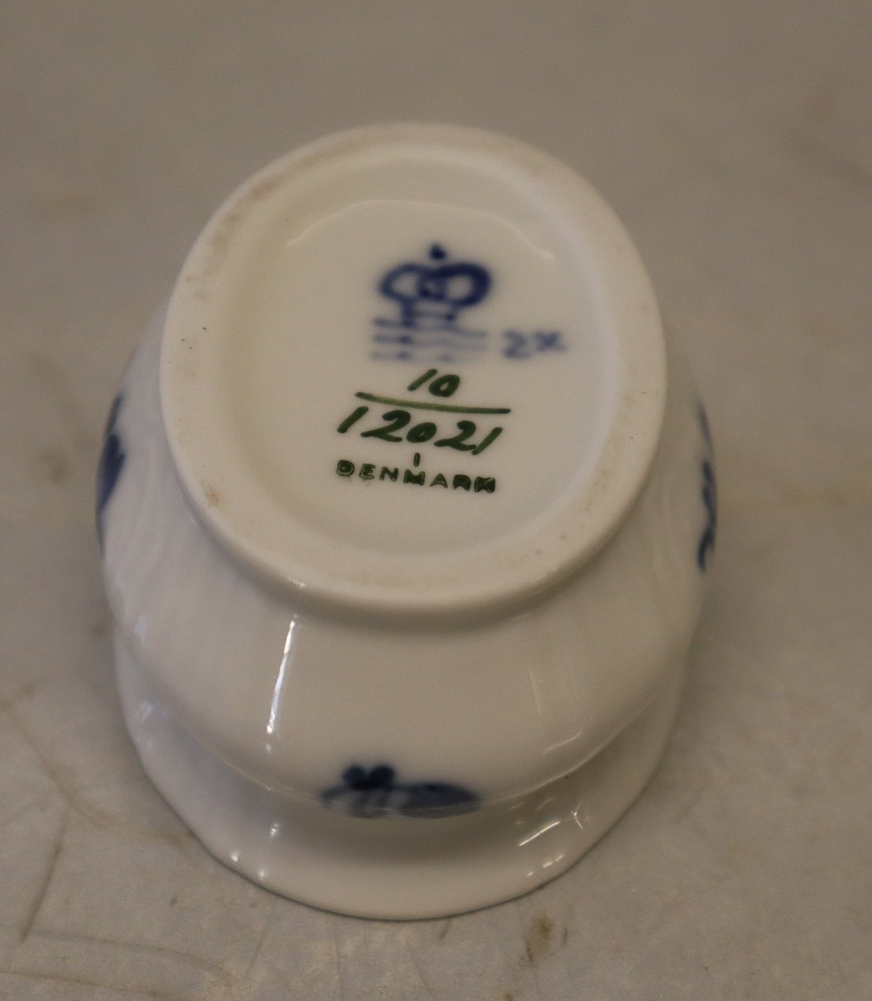 10-12021 Saltkar 3 x 6 cm Kongelig Dansk Porcelæn Blå Blomst Juliane Marie