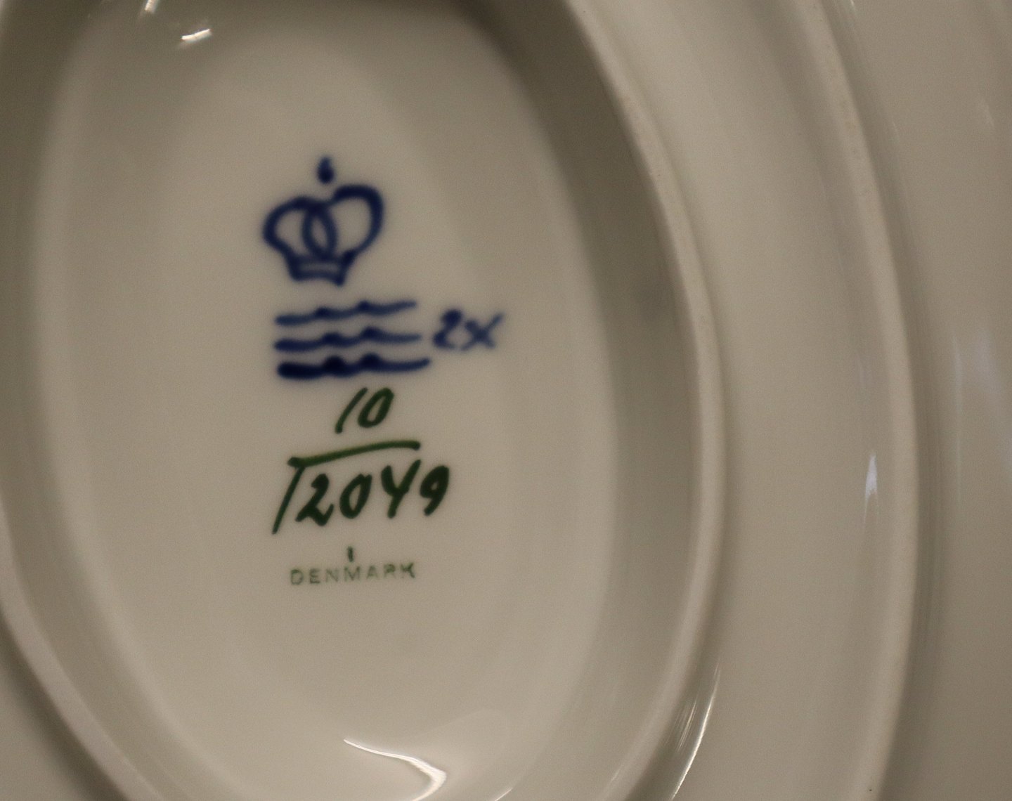 10-12049 Sovseskål på fast fod 9 x 23 x 15.5 cm Kongelig Dansk Porcelæn Blå Blomst Juliane Marie