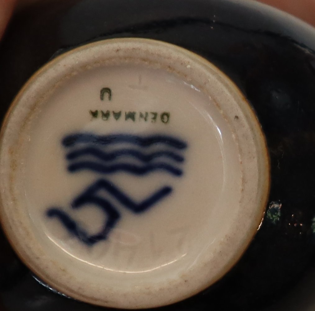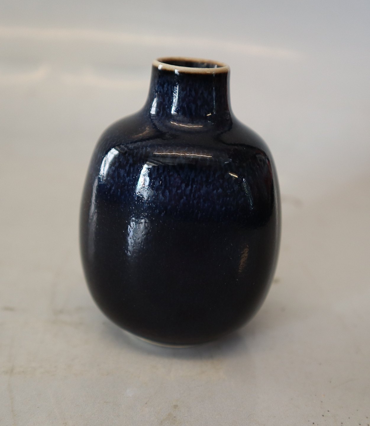 21403 Kgl Miniature vase 7 cm Nils Thorsson Sept 1956 Blåmusling glasur Kongelig Dansk Stentøj