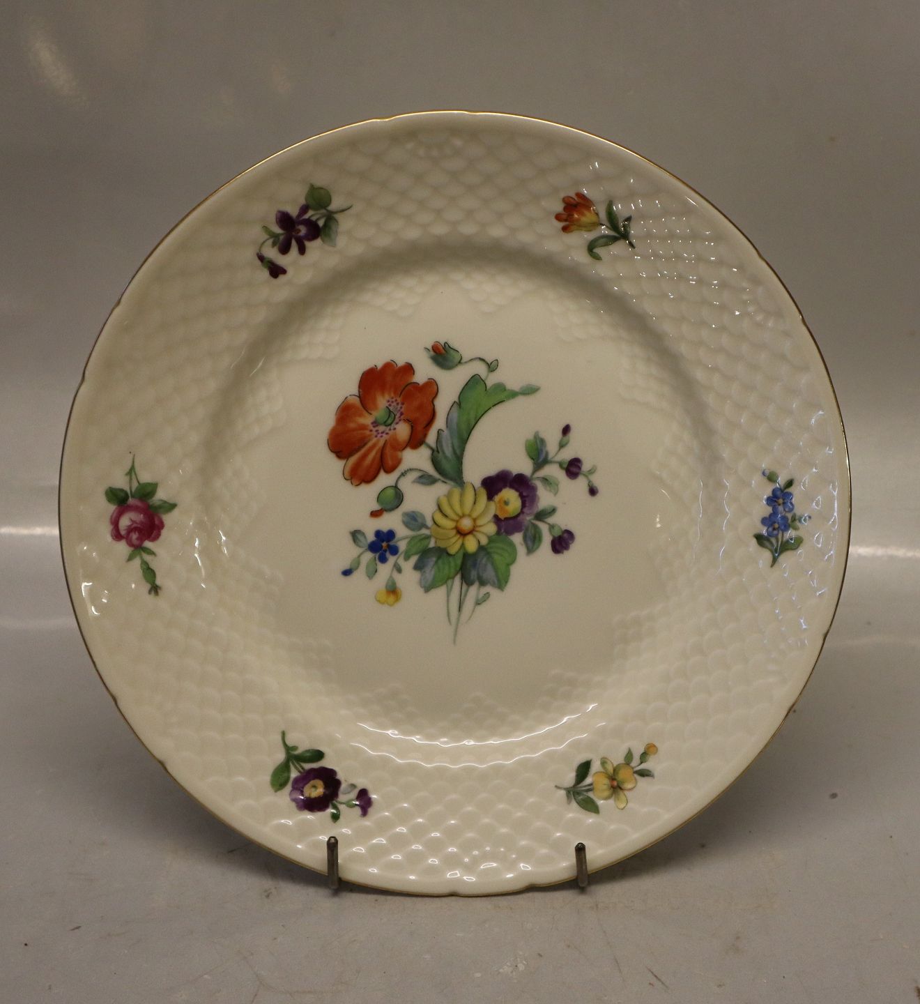 026 Tallerken 21,5 cm (326) Bing & Grøndahl Saksisk Blomst Creme på creme porcelæn I fin og hel stand