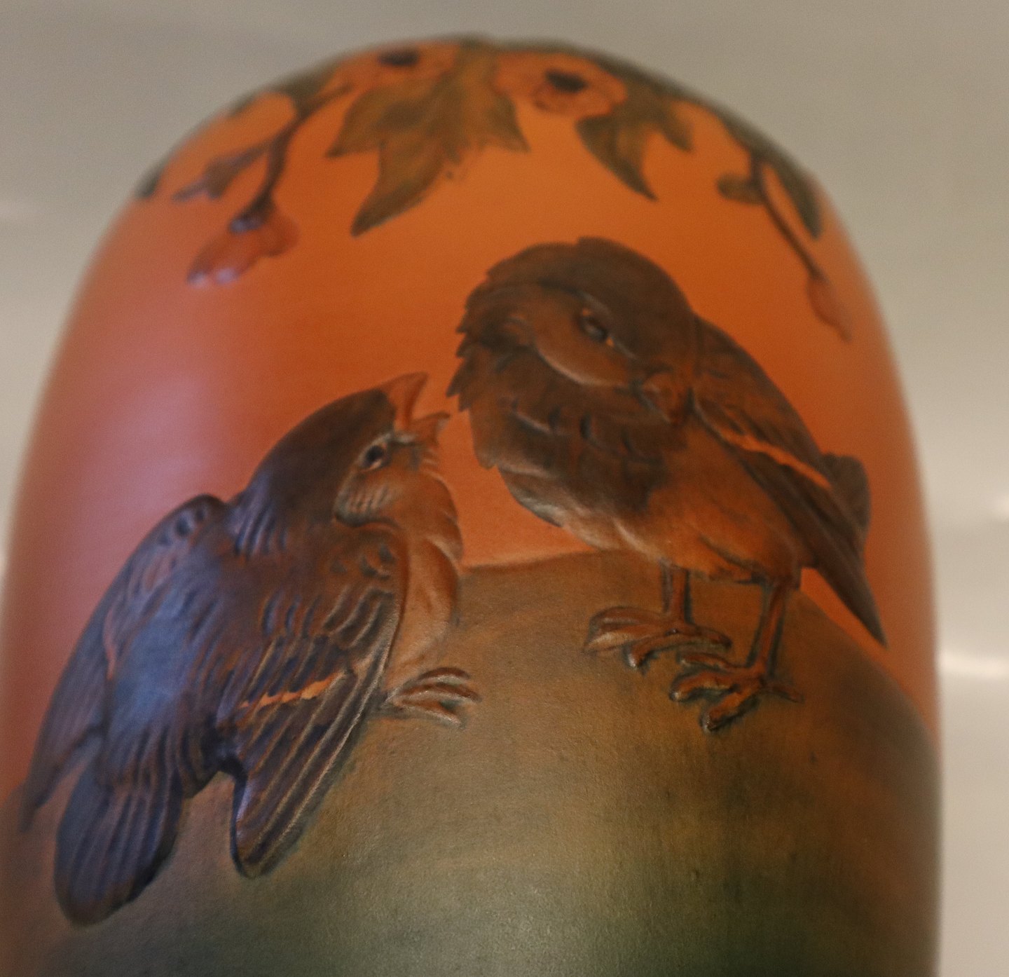 468 XX Vase med to Gråspurve 22 cm Axel Sørensen 1929 Keramik fra P. Ipsens Enke Kgl. Hof. Terracottafabrik 1843-1955 I god brugt stand