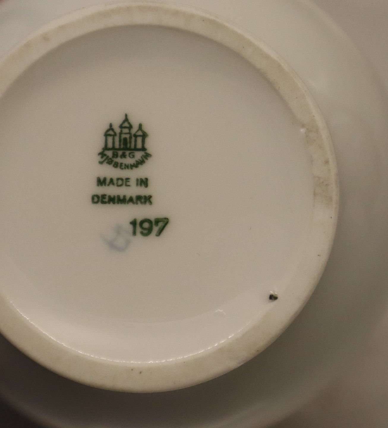 197 Flakon eddike 18 cm (386) med prop APOLLO: Hvidt porcelæn, blå og guldgrønne blade, form 676 Design Ebbe Sadolin Bing & Grøndahl I fin og hel stand.