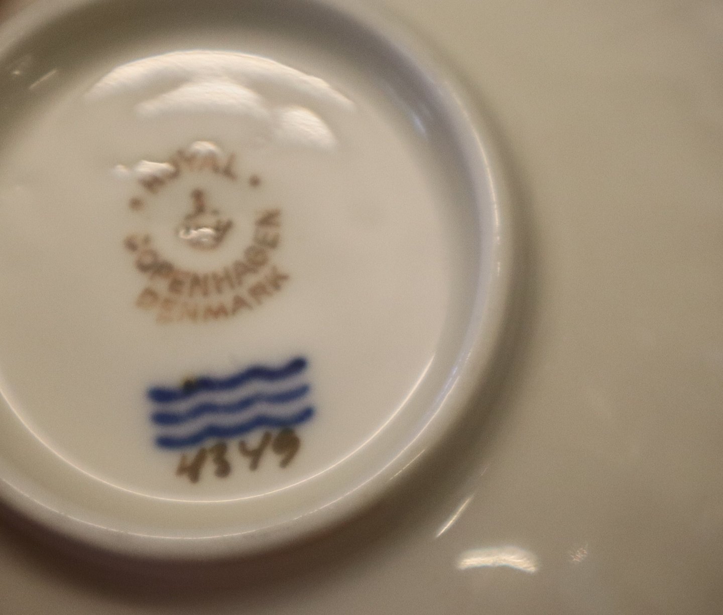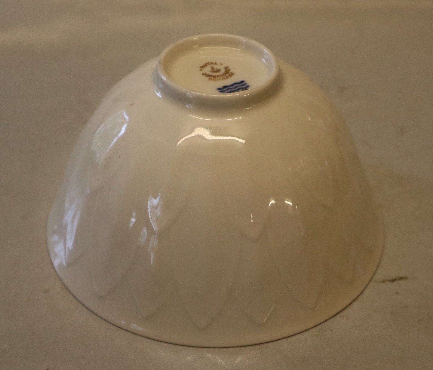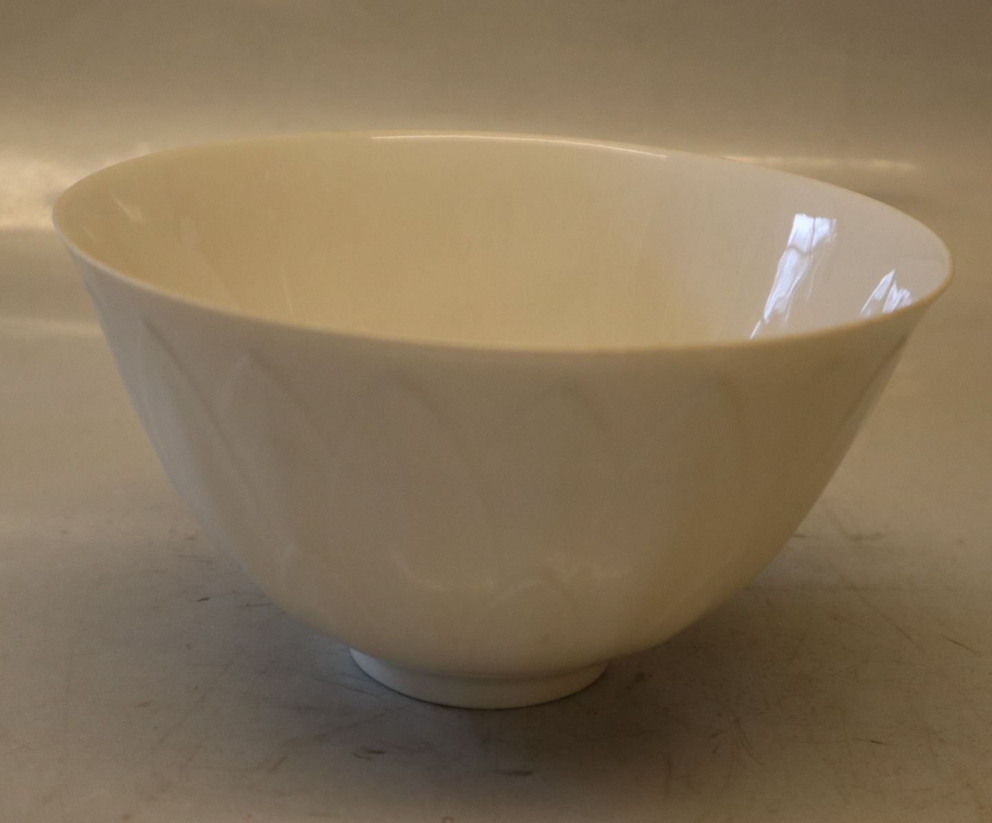 4349 Kgl. Hvid skål med lotus relief 8.5 x 16 cm Hans Henrik Hansen Blanc de Chine Kongelig Dansk