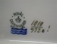 Kgl. 1010 Fensmark : Cremefarvet glasur, koralrød blomst med grønne blade, grønt bånd og guldfilet. Dekorationen med Rød Arve, populært kaldet "Grine til Middag" Det latinske navn: Ana Gallis Arvensis. Design Thorkild Olsen før 1961