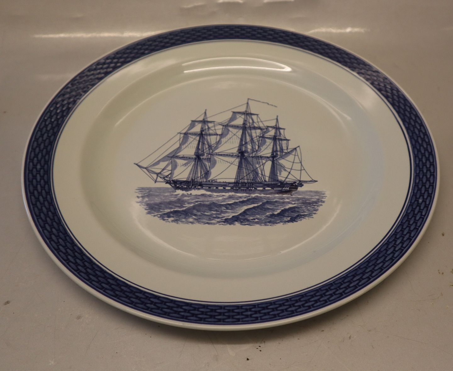0933-46 Stort rundt fad 34 cm Skibsstellet Blå Royal Copenhagen Aluminia Tranquebar Aluminia Fajance Skibsstellet # 46 I fin og hel stand