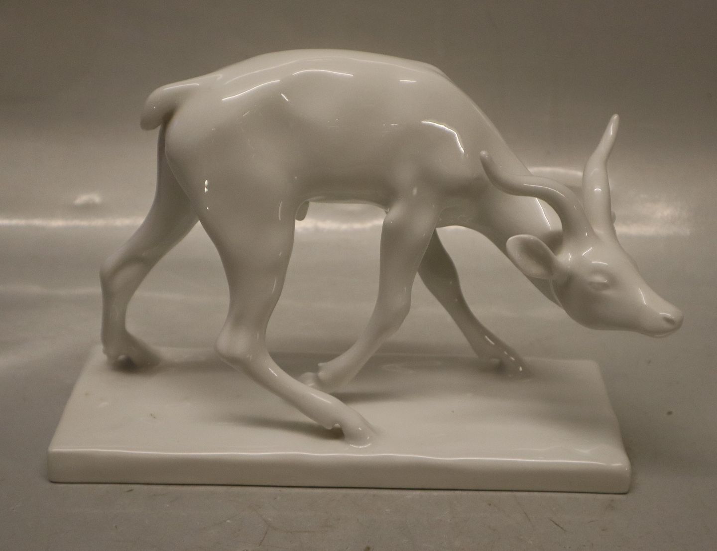 B&G 2007 Hjort buk 16 x 22 cm Signeret J. R. Gauguin i glasuren Blanc de Chine Bing & Grøndahl