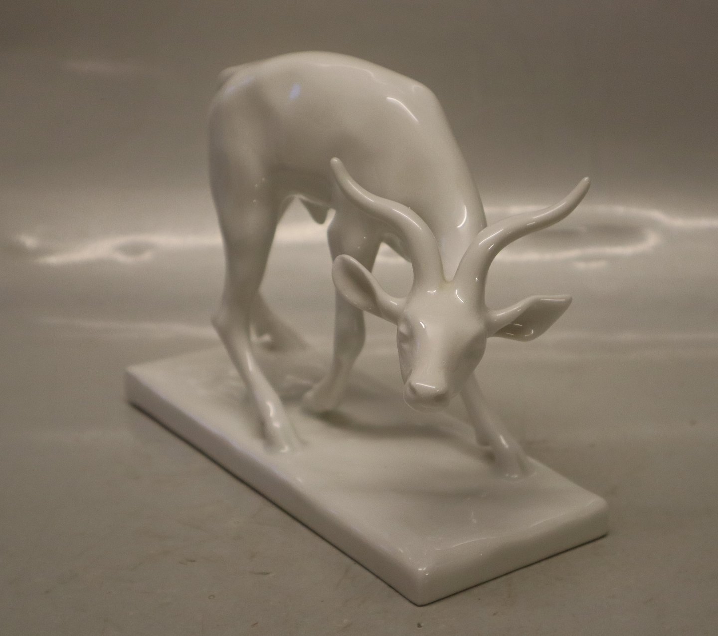 Beskrivelse: B&G 2007 Hjort buk 16 x 22 cm Signeret J. R. Gauguin i glasuren Blanc de Chine Bing & Grøndahl I fin og hel stand.