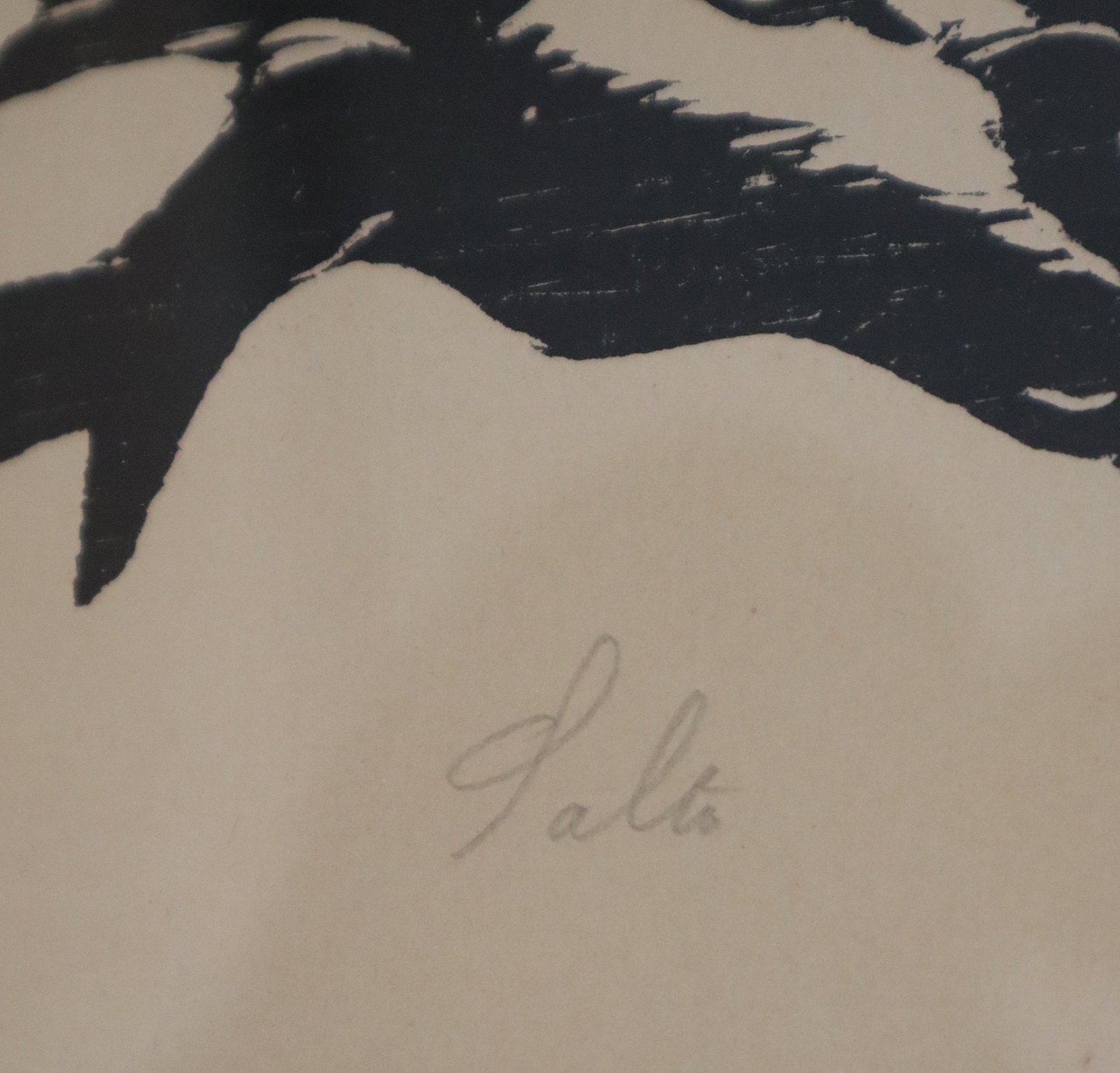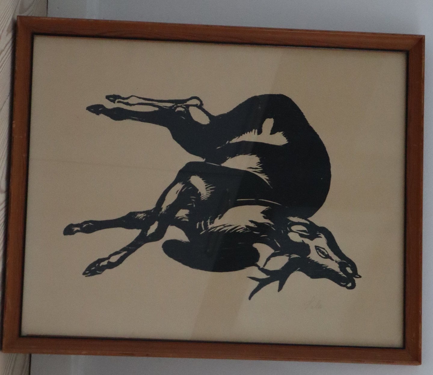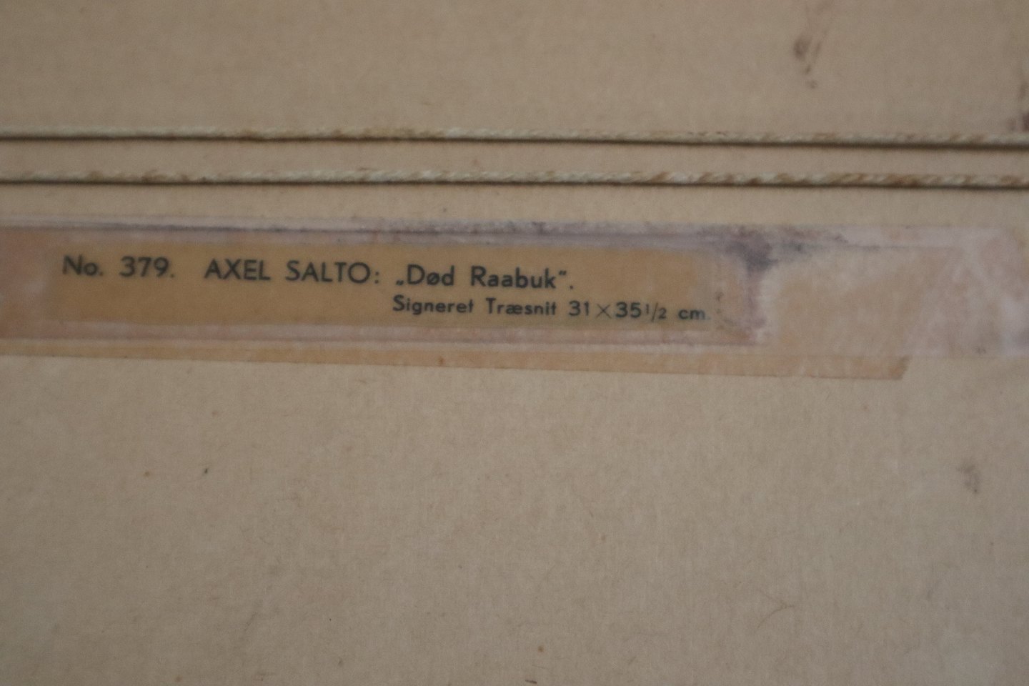 No 379 Axel Salto: Død Raabuk Signeret Træsnit 31 x 35.5 cm