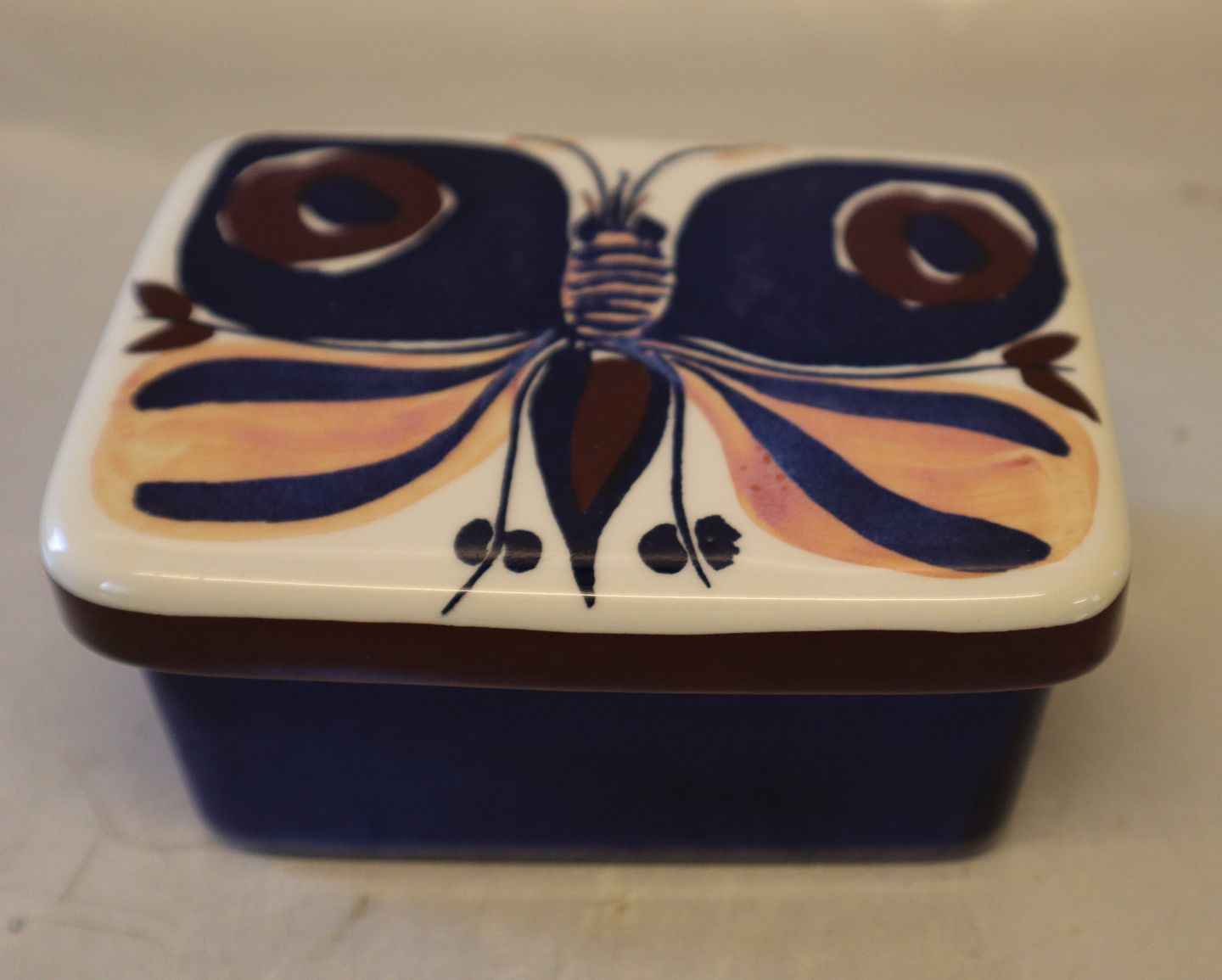 131-2823 Tenera dåse design Ingv. O 1958 Dekoreret med sommerfugl Inge-Lise Koefoed Royal Copenhagen Aluminia fajance