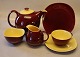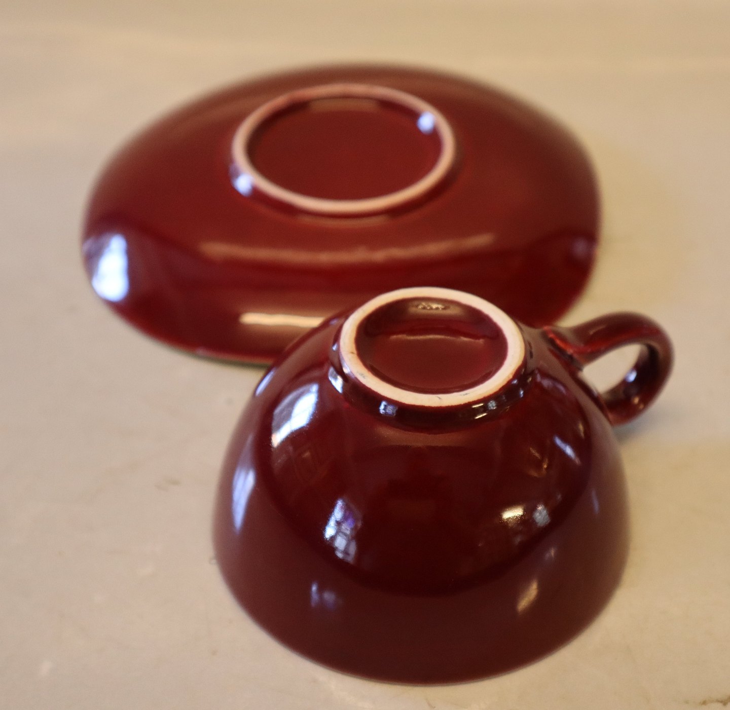 Tekop 5.3 x 10.5 cm og underkop 16 cm gul og bordaux