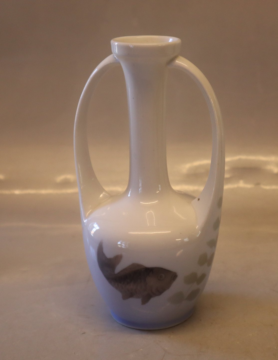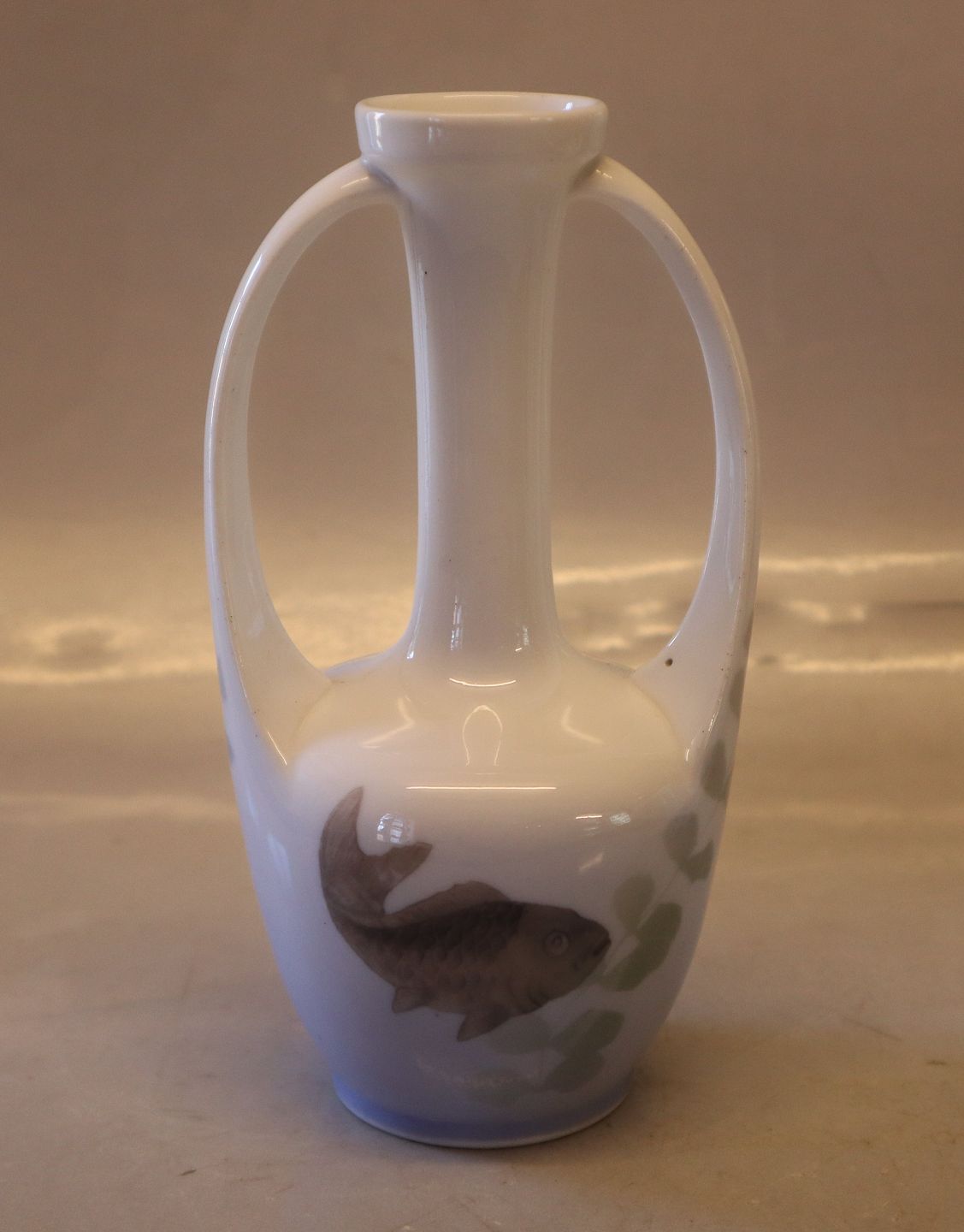 Art Nouveau 0193- 60 A Kgl. Fiskevase med 2 arme 24 cm pre 1923 painter no 99 Kongelig Dansk Porcelæn