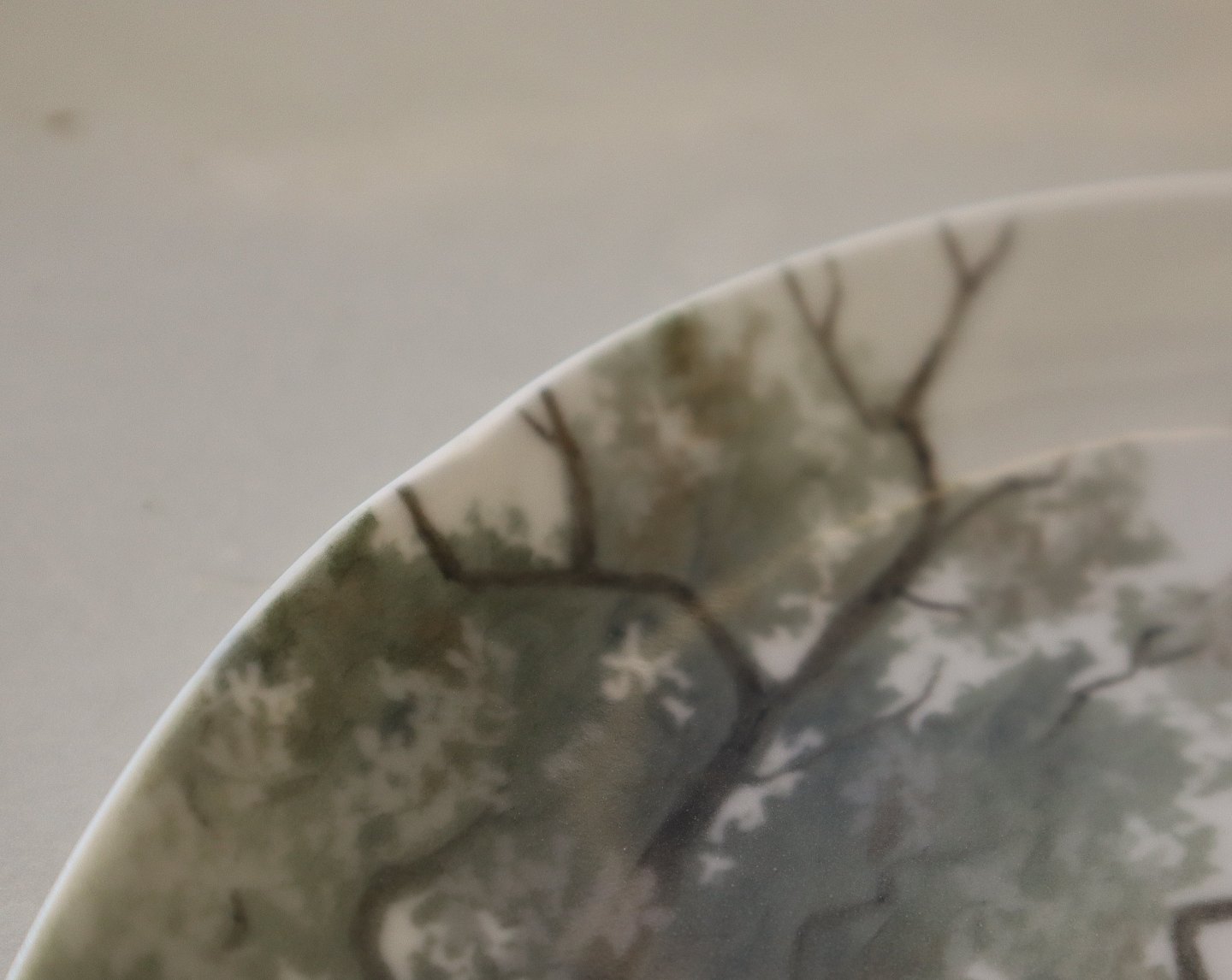 B&G 8786-357-20 Platte: ET træ ved vandkanten 20 cm Signeret MS Marie Smidt Lille nedslibning på kant Bing & Grøndahl