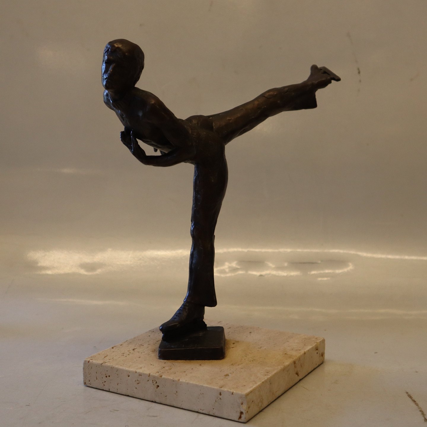 Skøjteløber - Bronze på Marmorfod ca 24 x 23 cm Signeret Kelsey 1976
